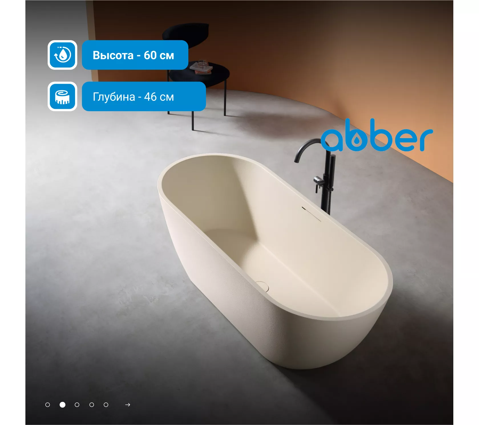 Ванна из искусственного камня ABBER Frankfurt 170х75 светло-бежевая матовая