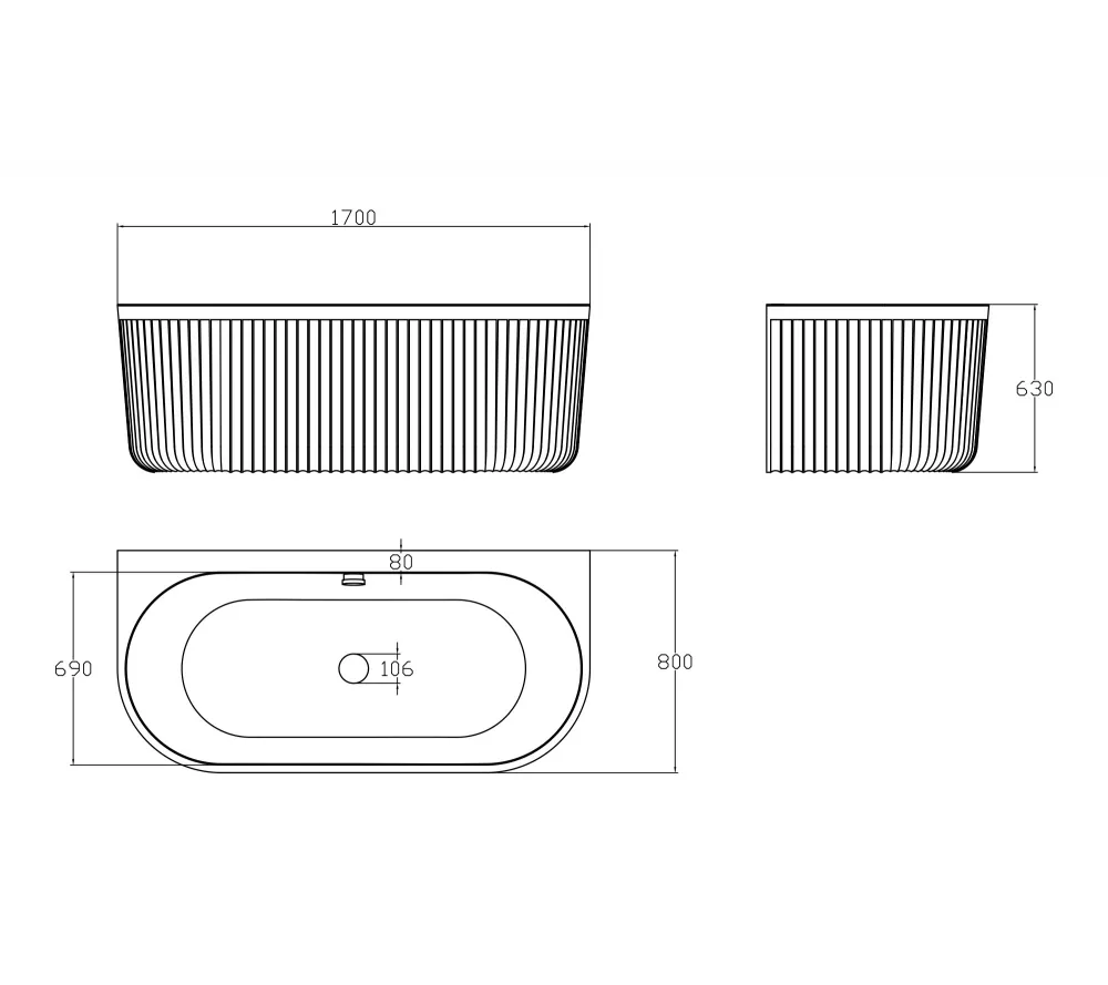 Ванна из искусственного камня ABBER Leipzig 170х80 белая матовая