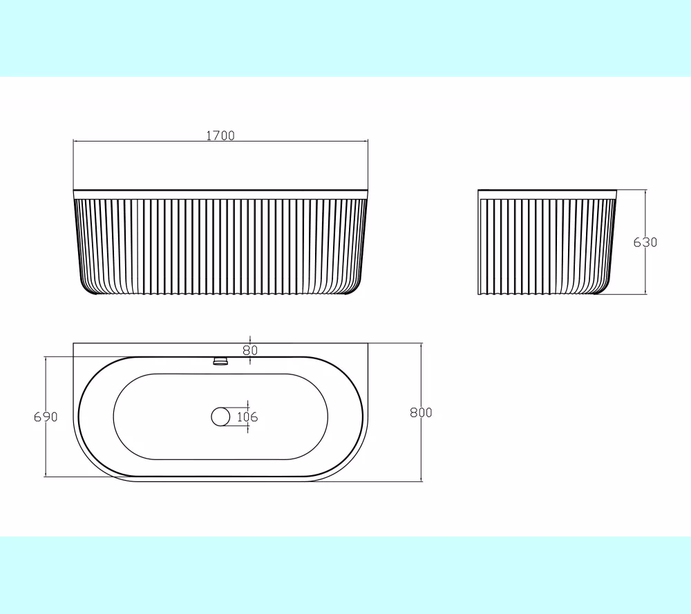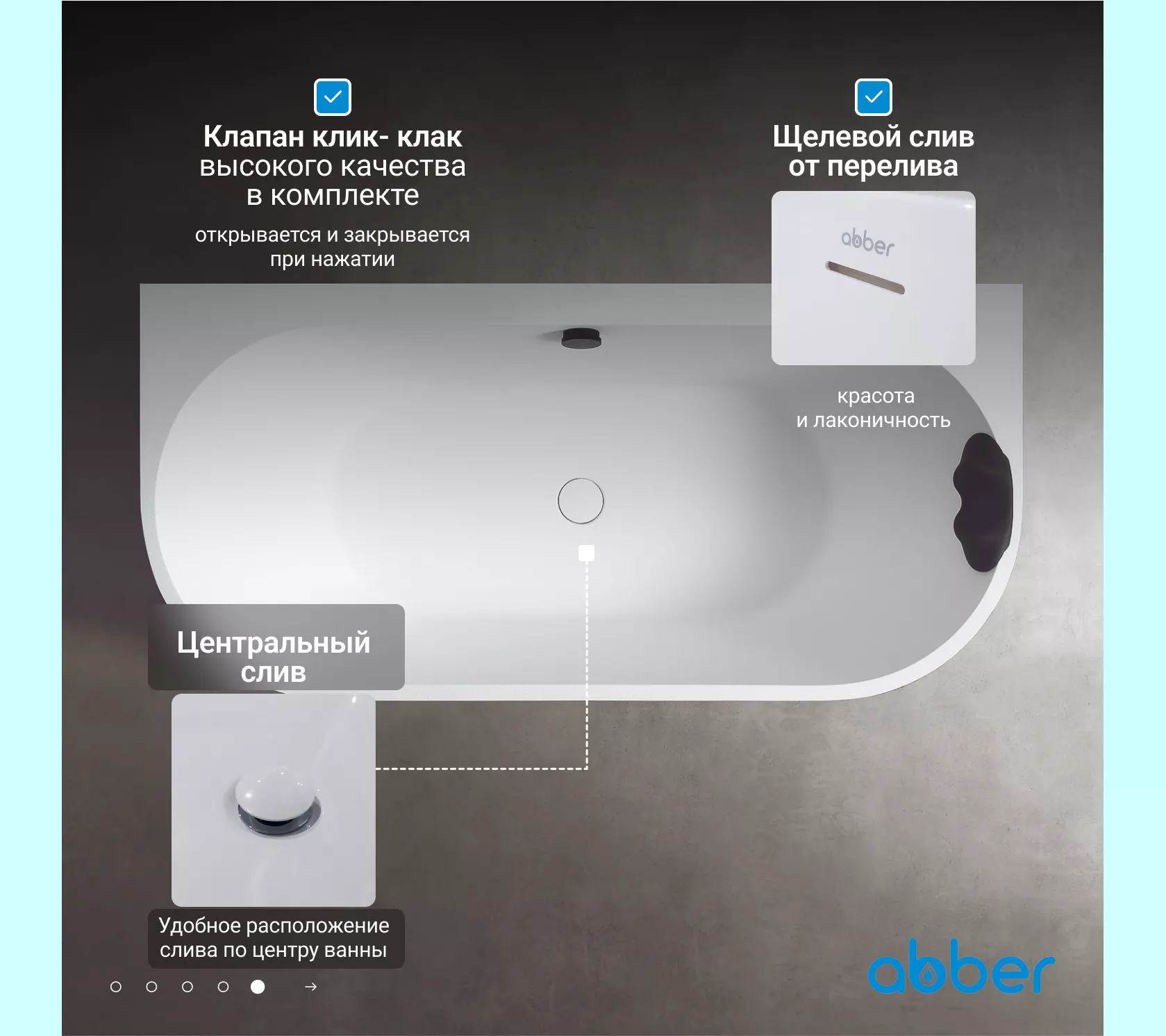 Ванна из искусственного камня ABBER Leipzig 170х80 черно-белая матовая