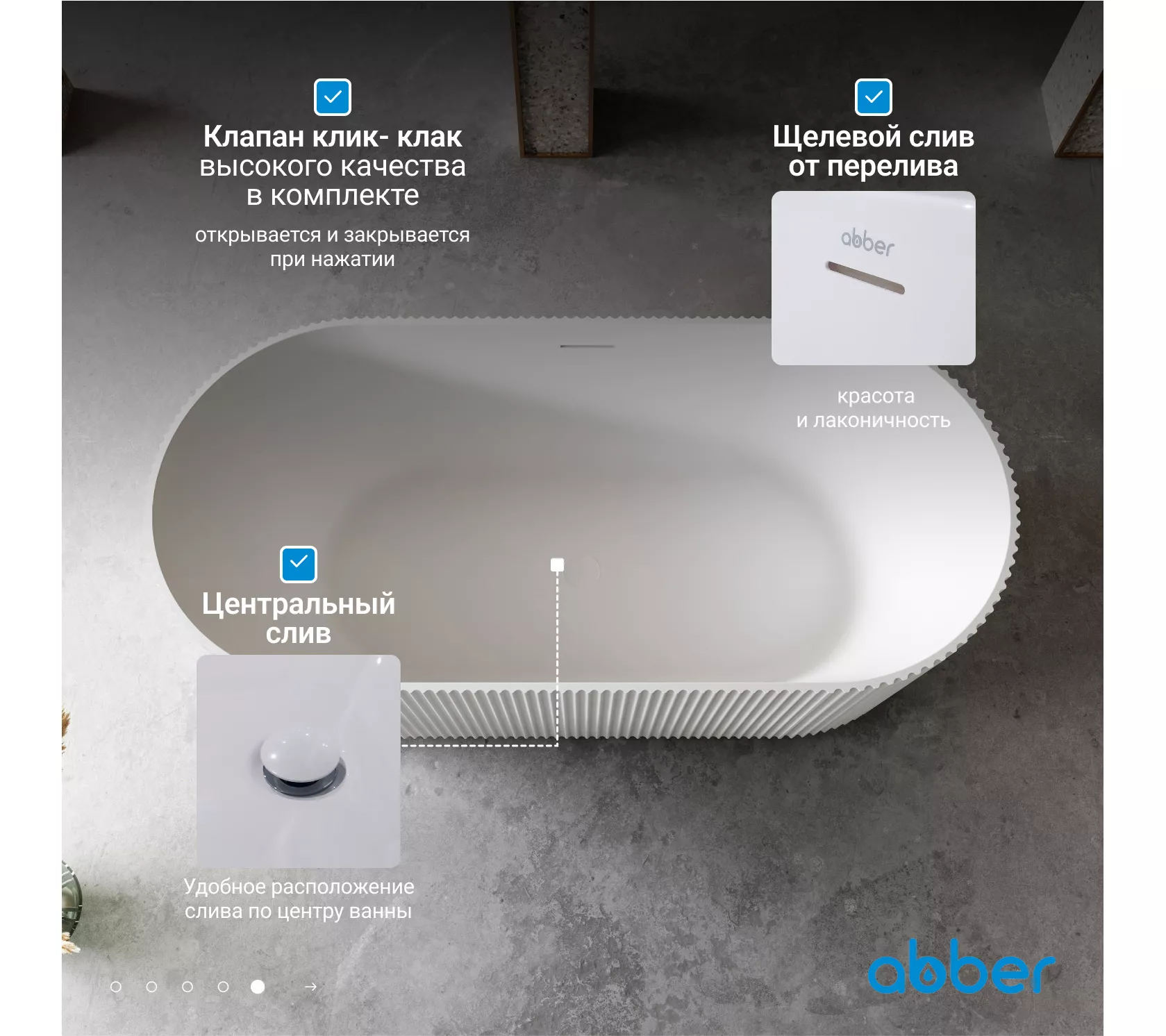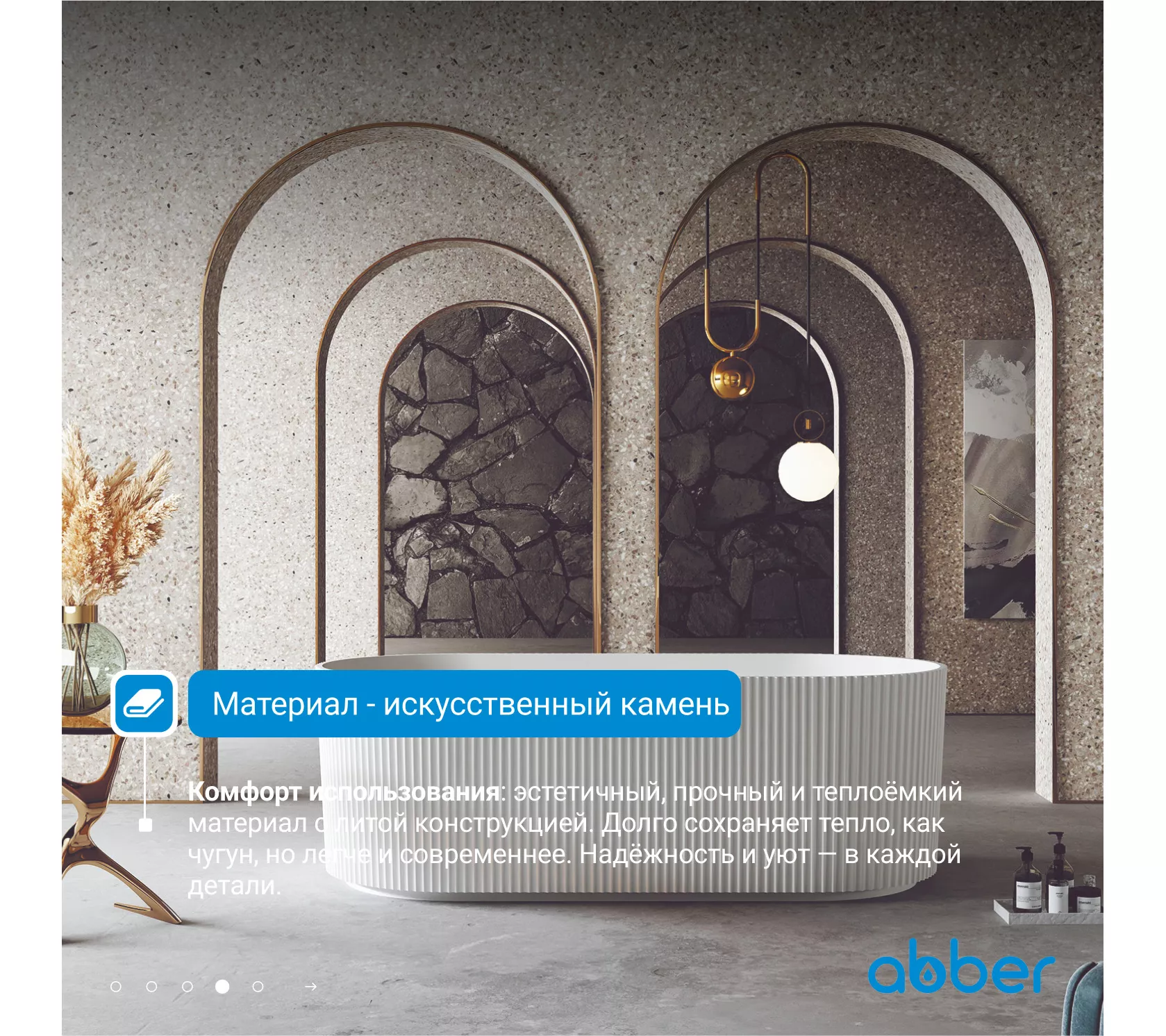 Ванна из искусственного камня ABBER Stein AS9601 белая матовая 170*75