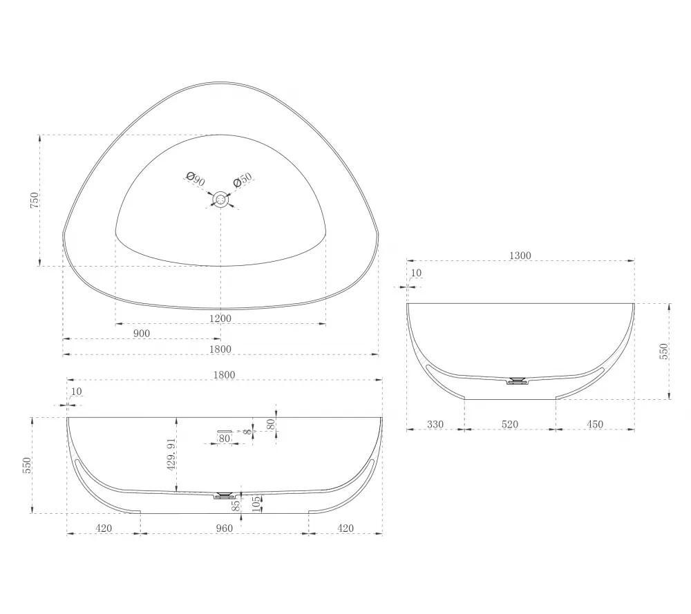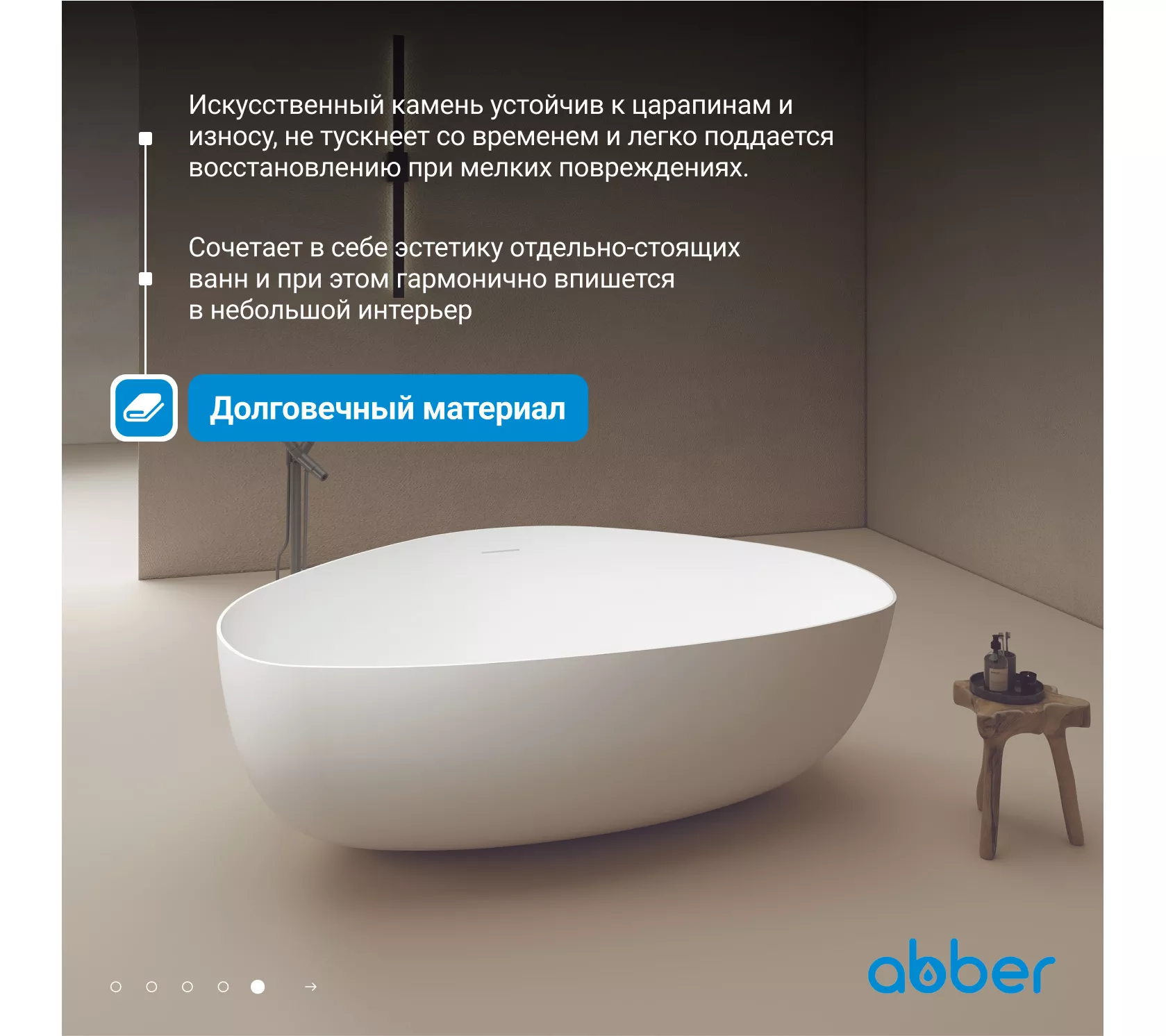 Ванна из искусственного камня ABBER Stein AS9608 белая матовая 180*130