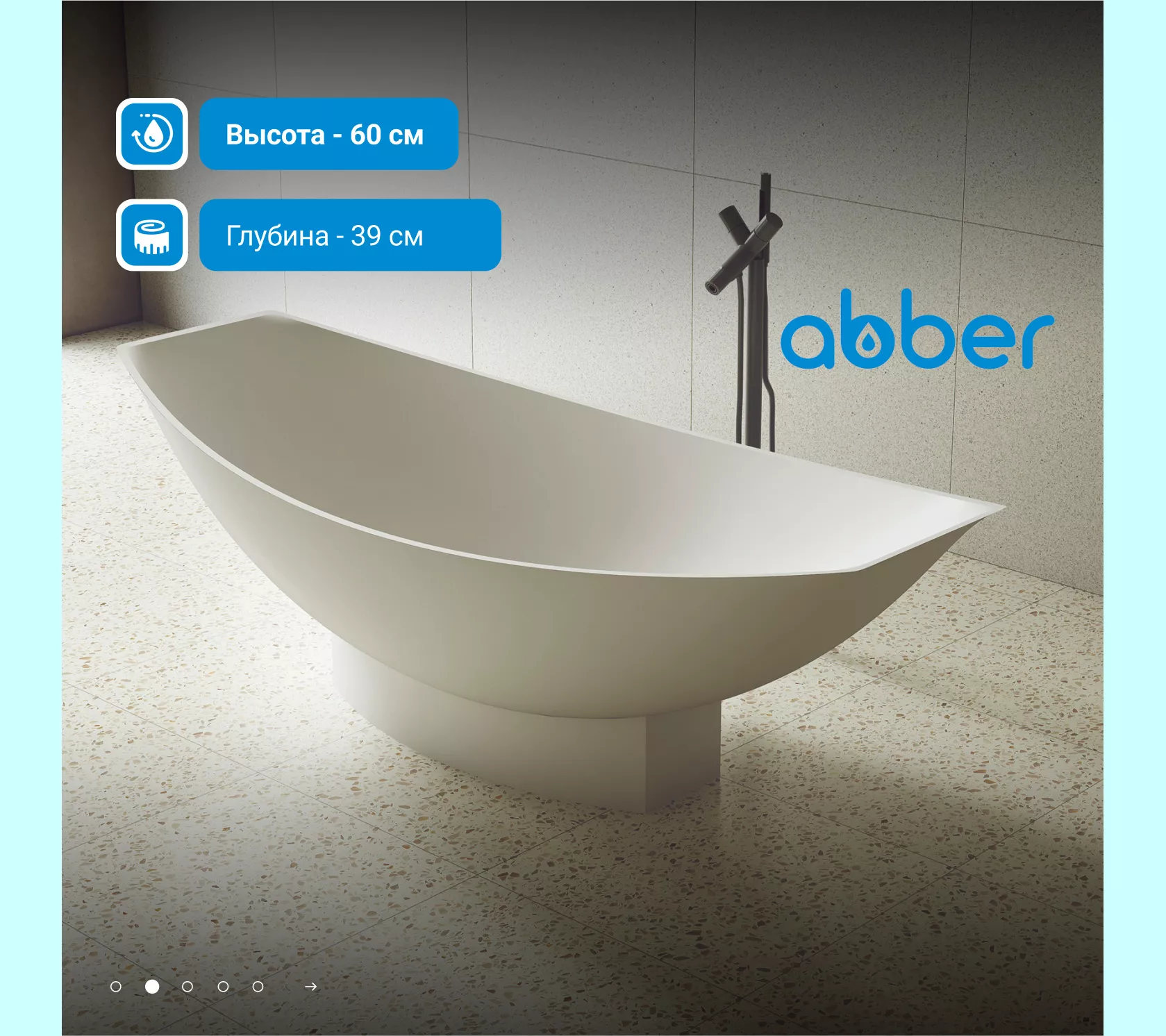 Ванна из искусственного камня ABBER Stein AS9610 белая матовая 180*80