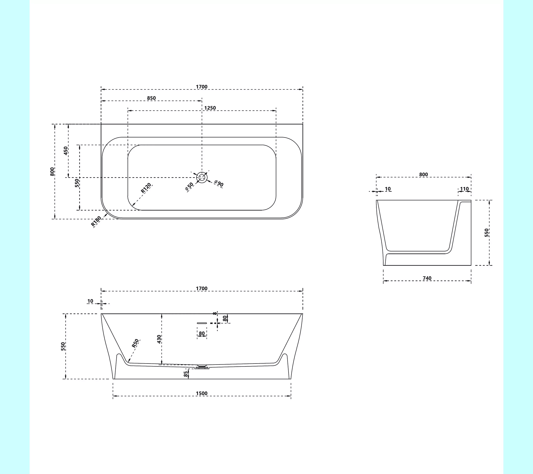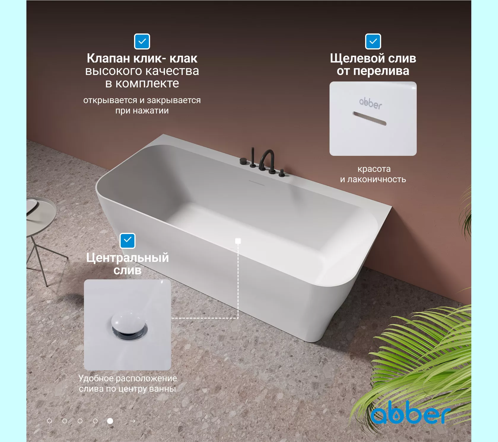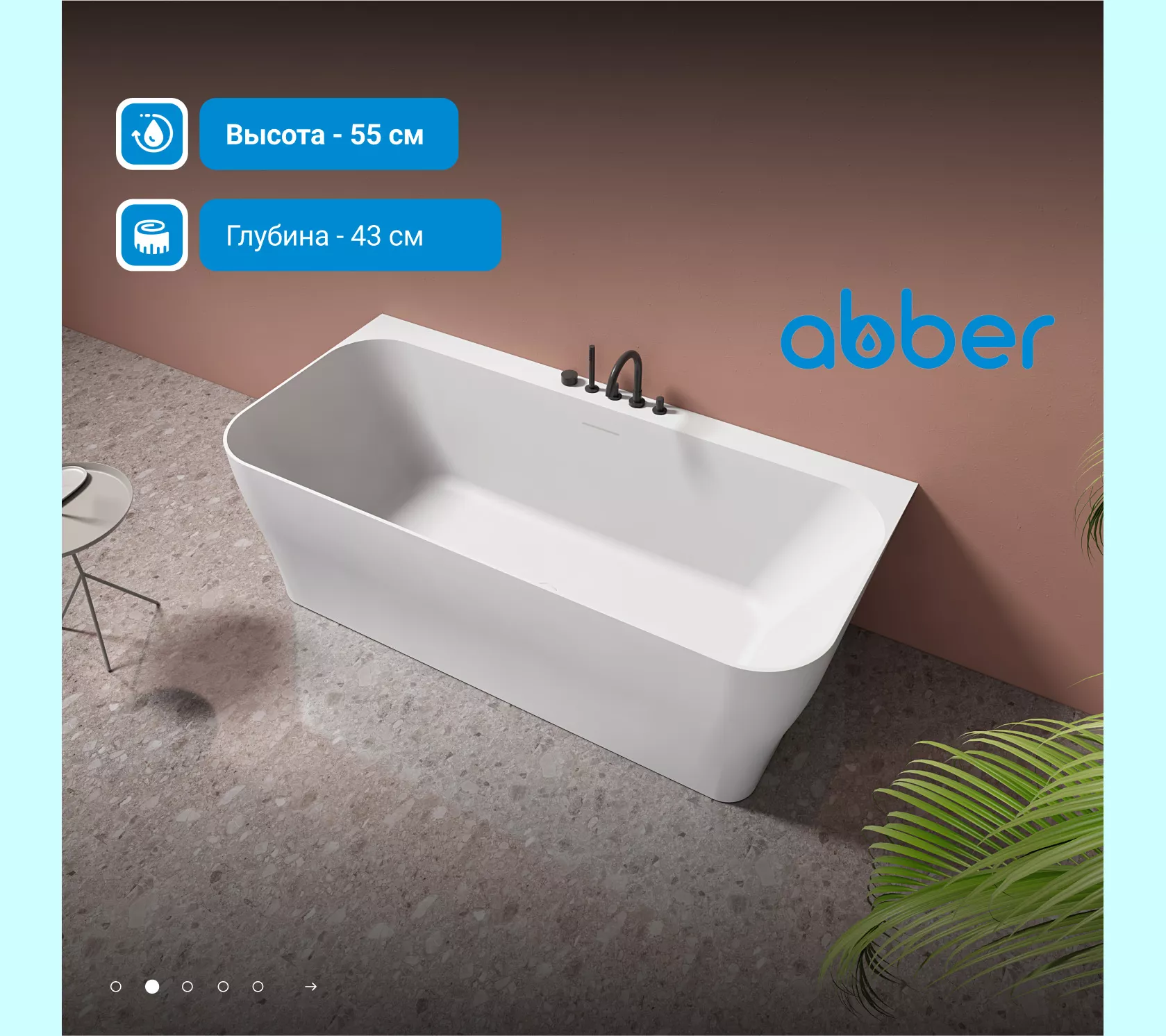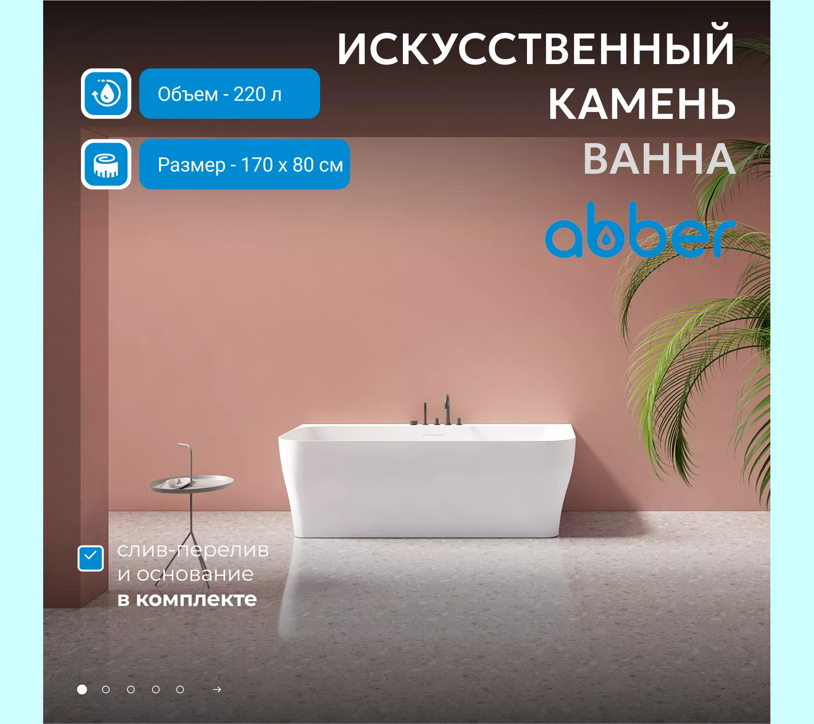 Ванна из искусственного камня ABBER Stein AS9616 белая матовая 170*80