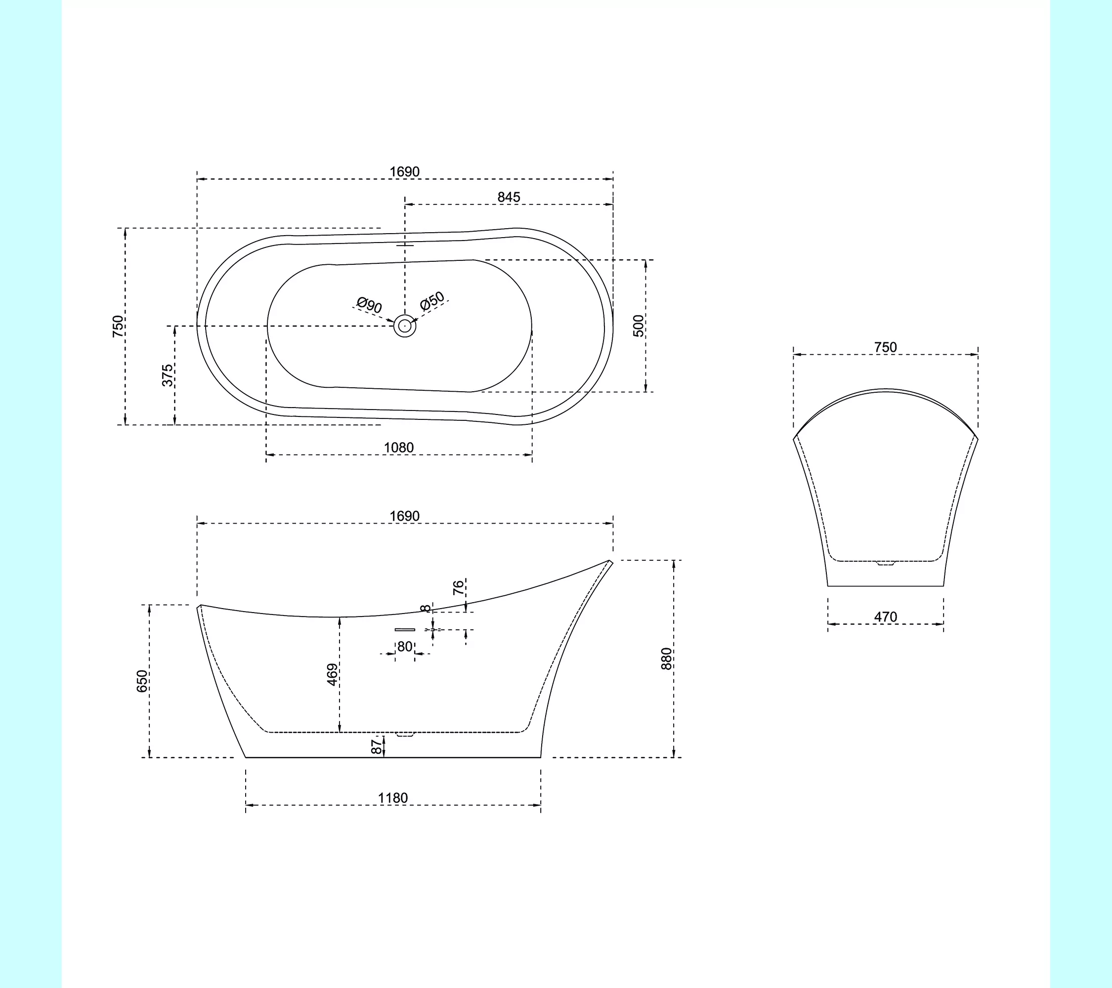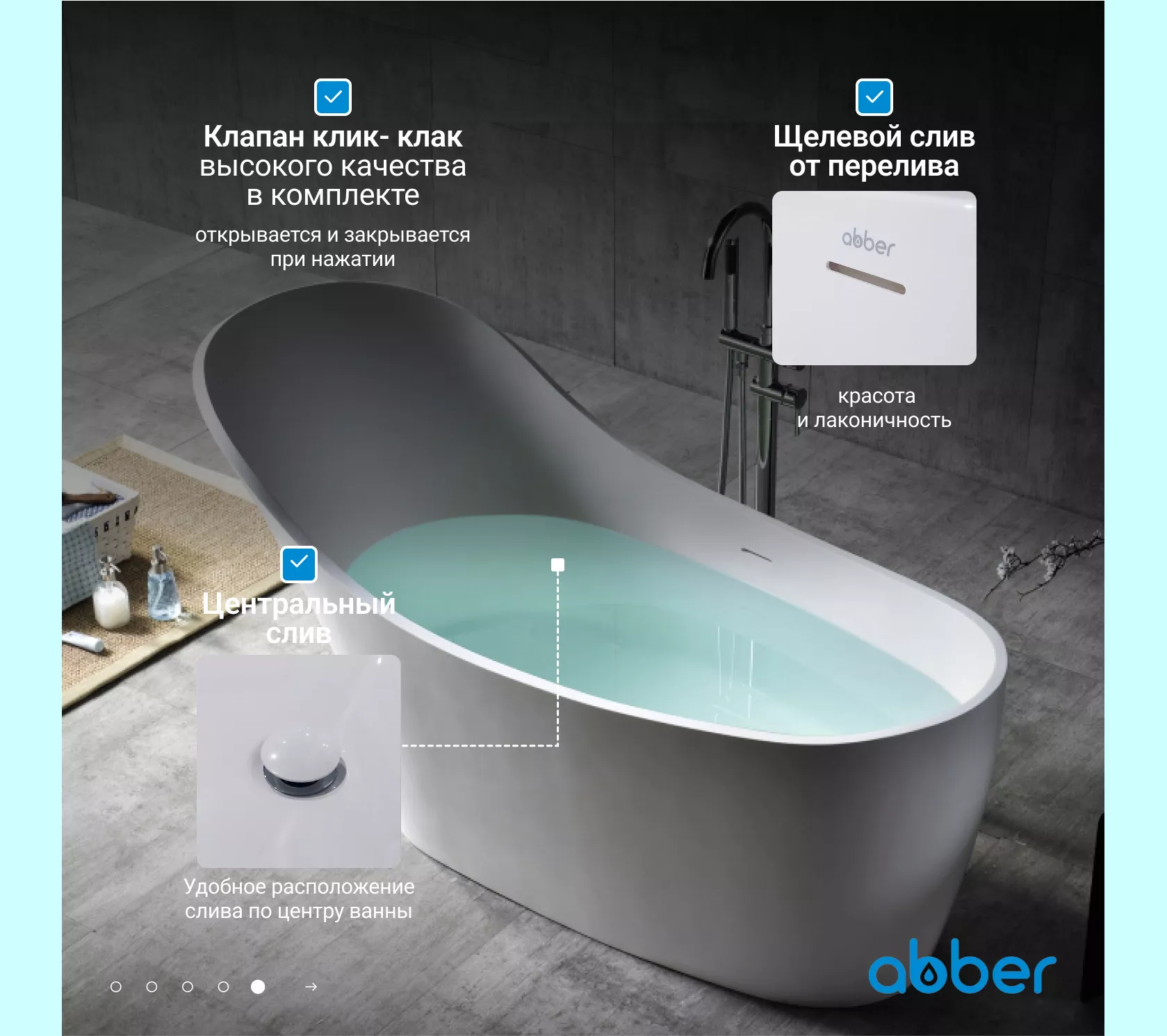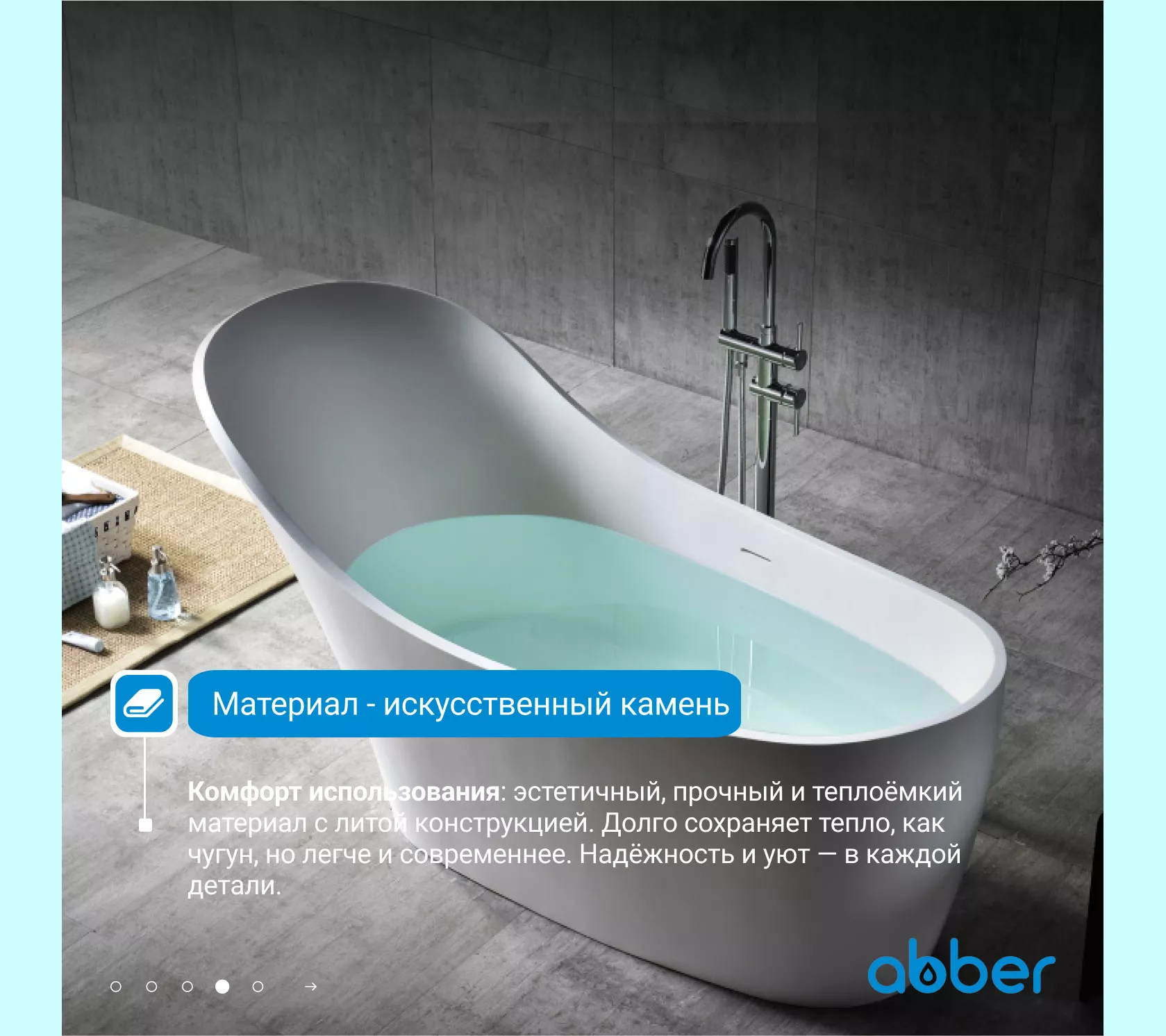 Ванна из искусственного камня ABBER Stein AS9618 белая матовая 170*75