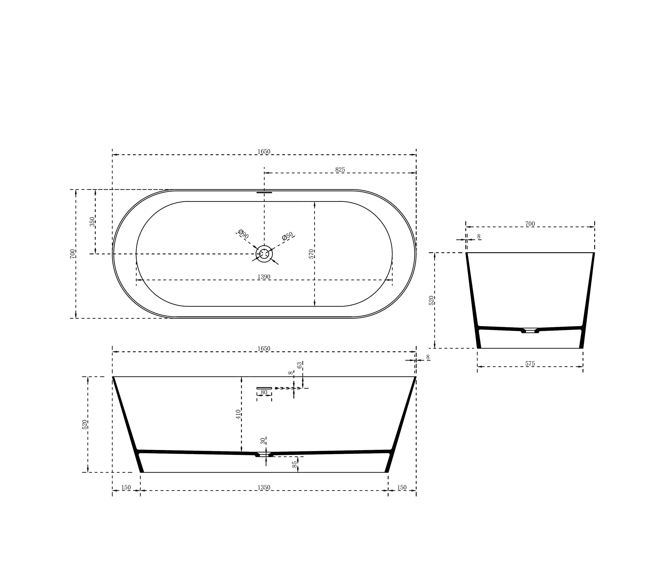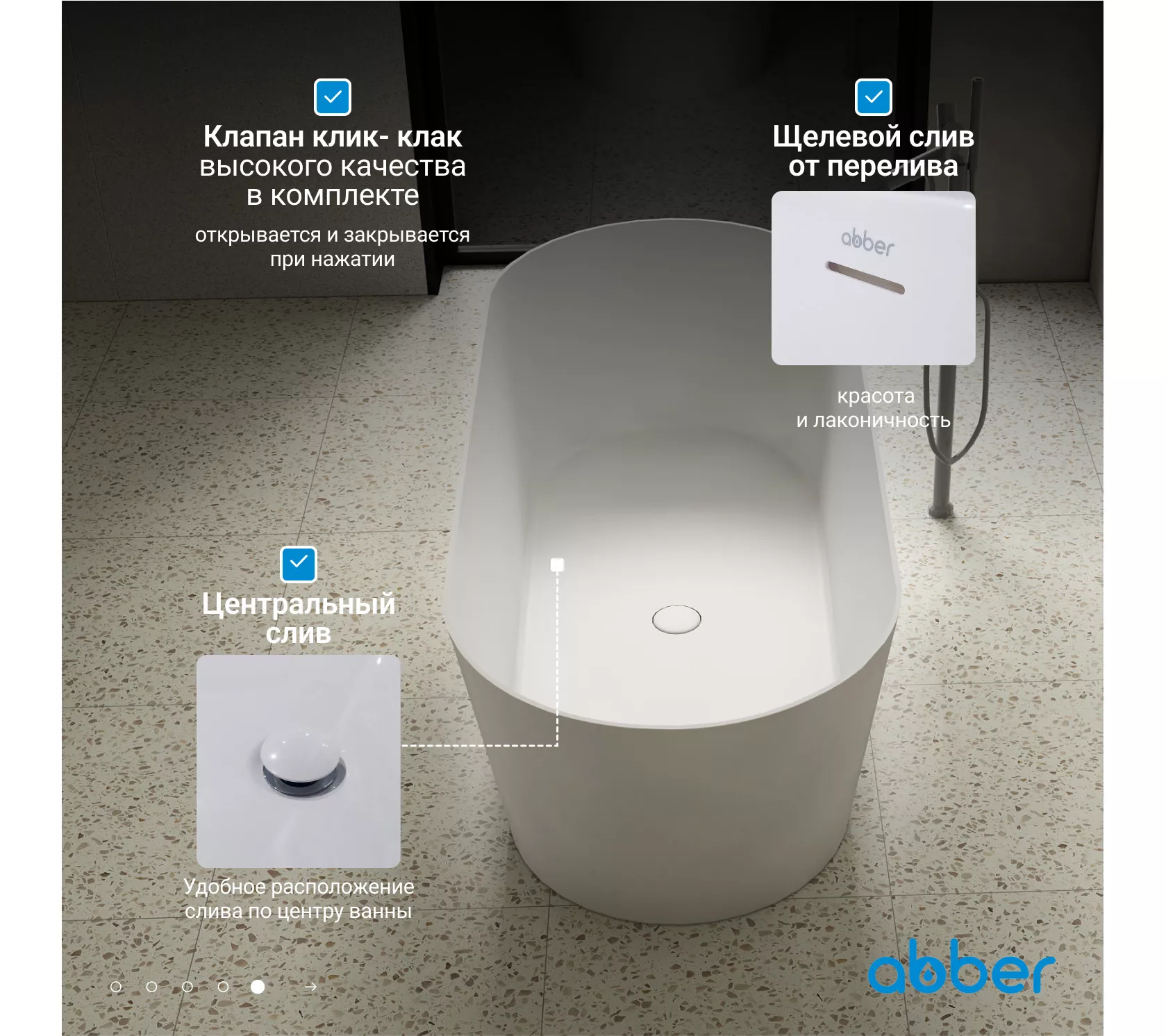 Ванна из искусственного камня ABBER Stein AS9622 белая матовая 165*70