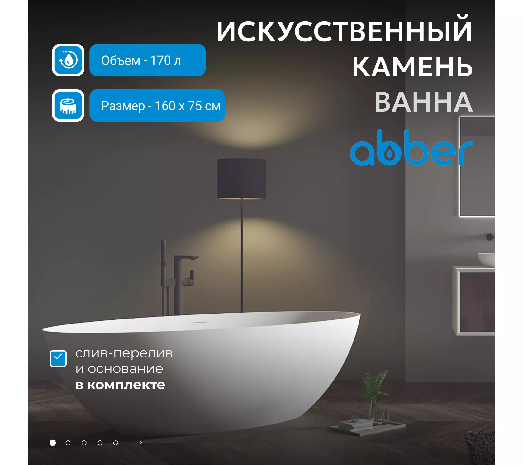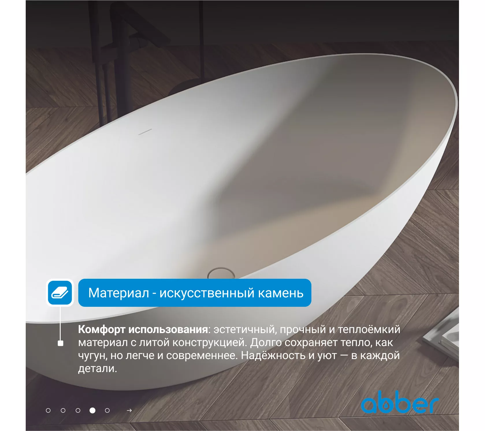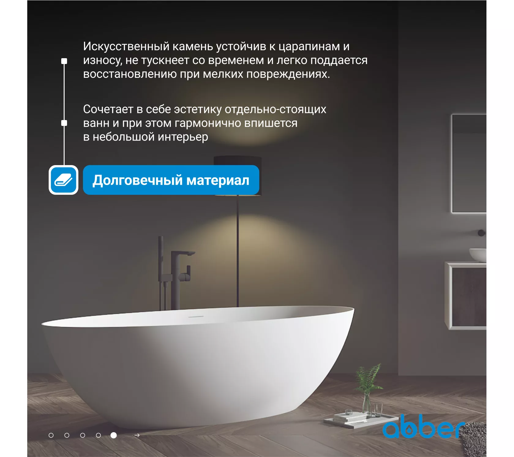 Ванна из искусственного камня ABBER Stein AS9625 белая матовая