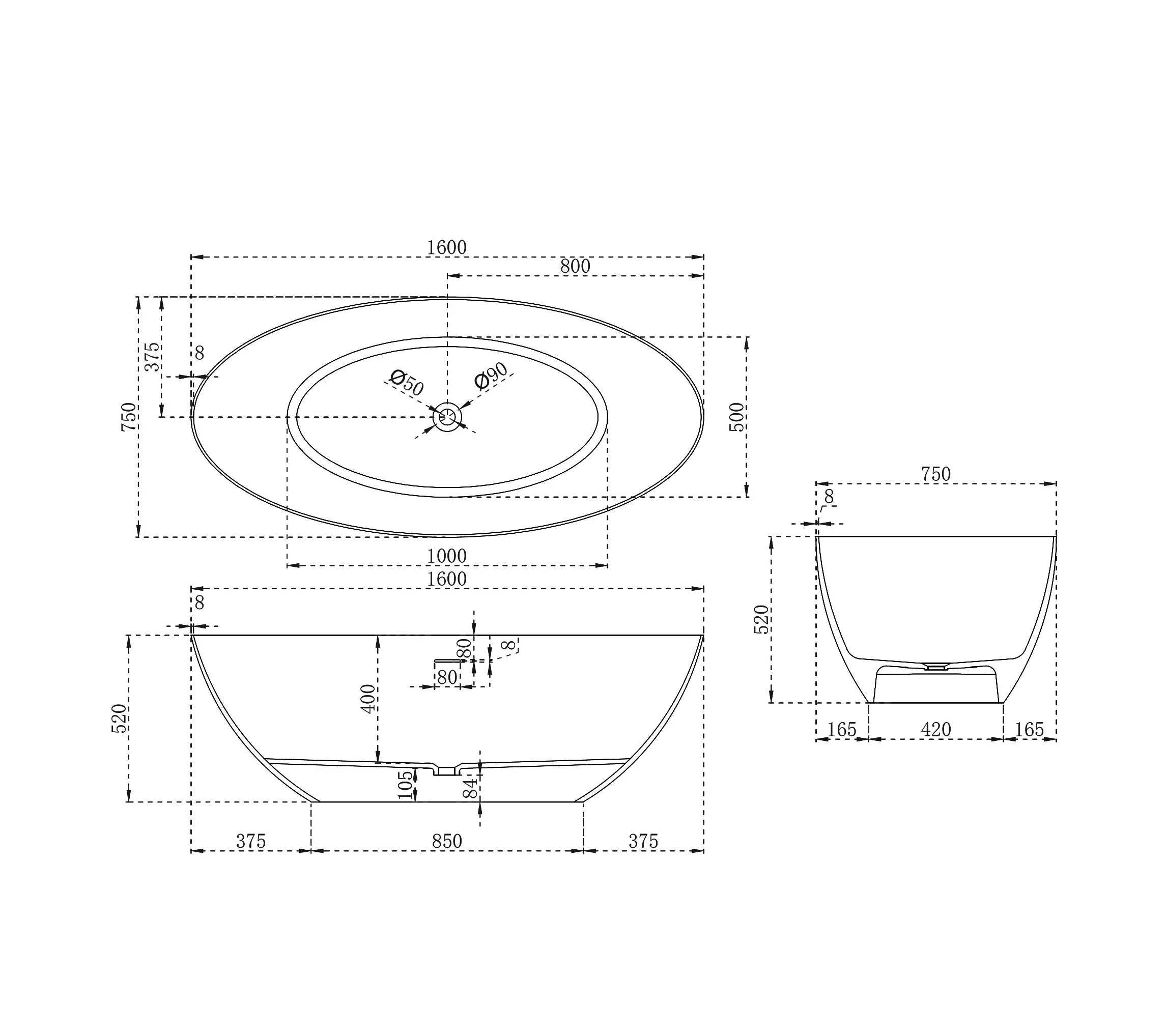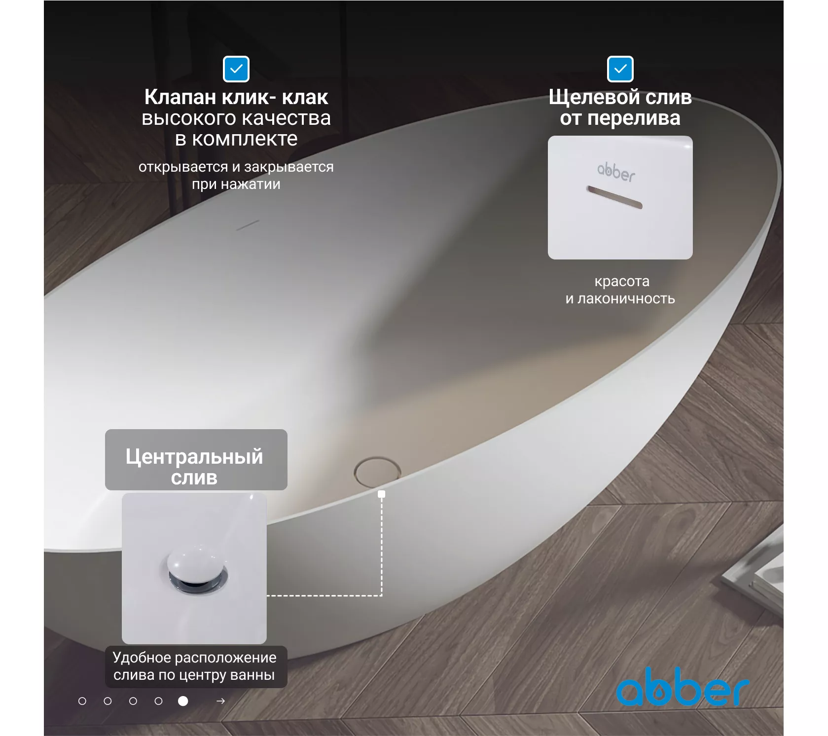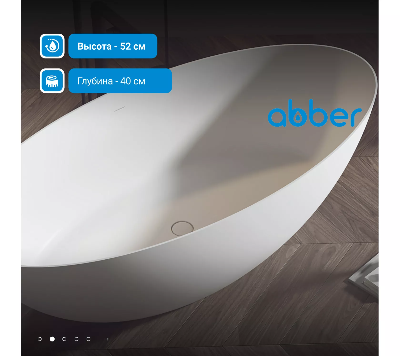 Ванна из искусственного камня ABBER Stein AS9625 белая матовая
