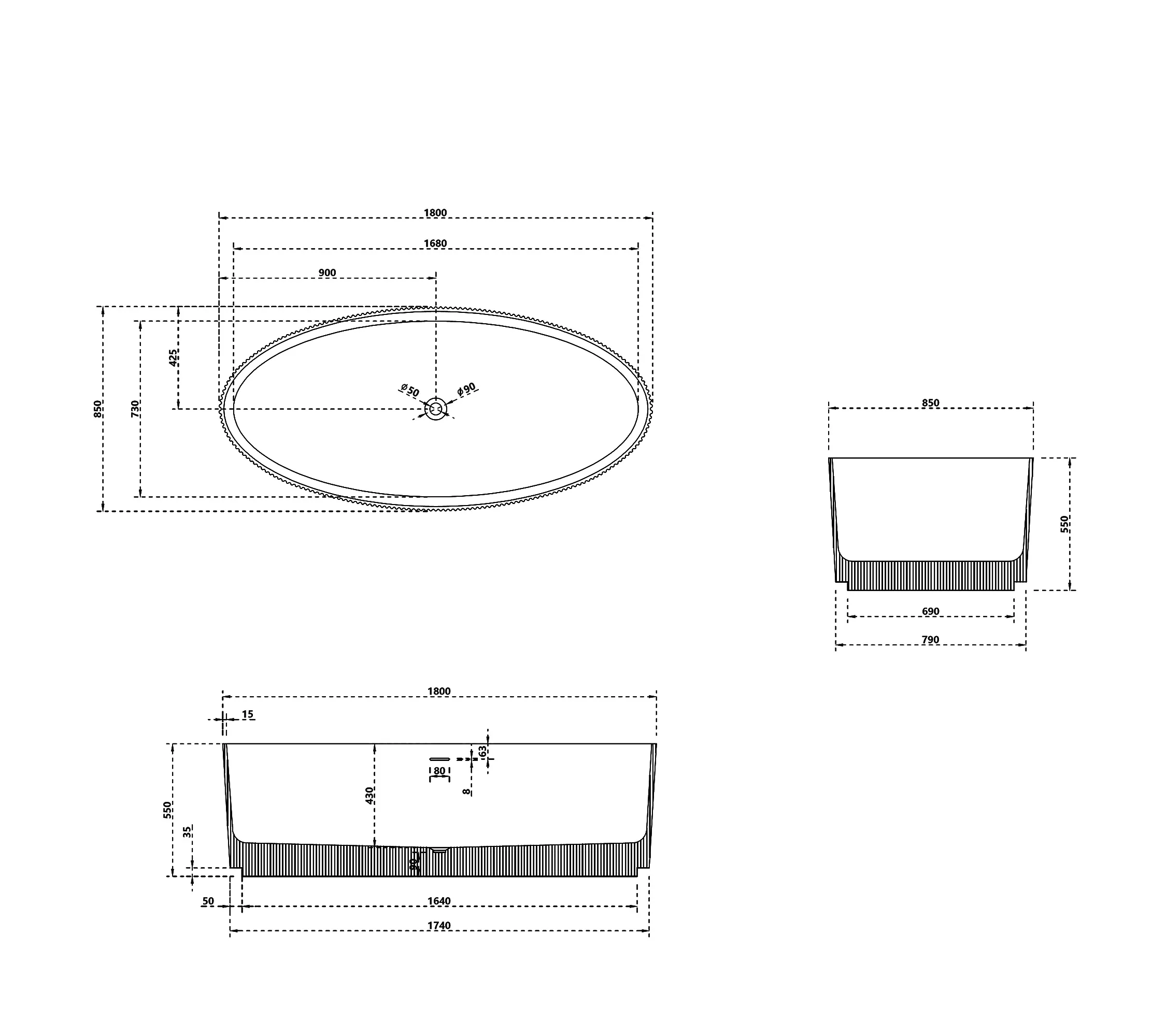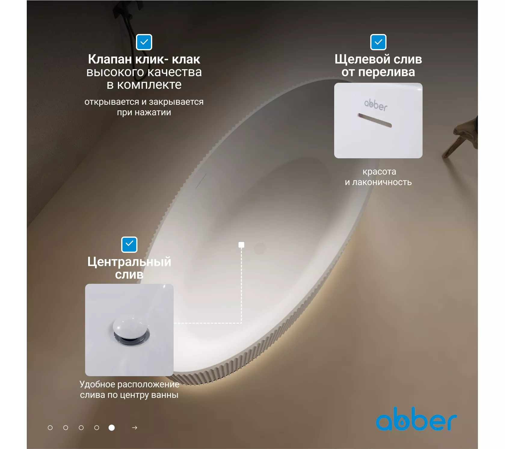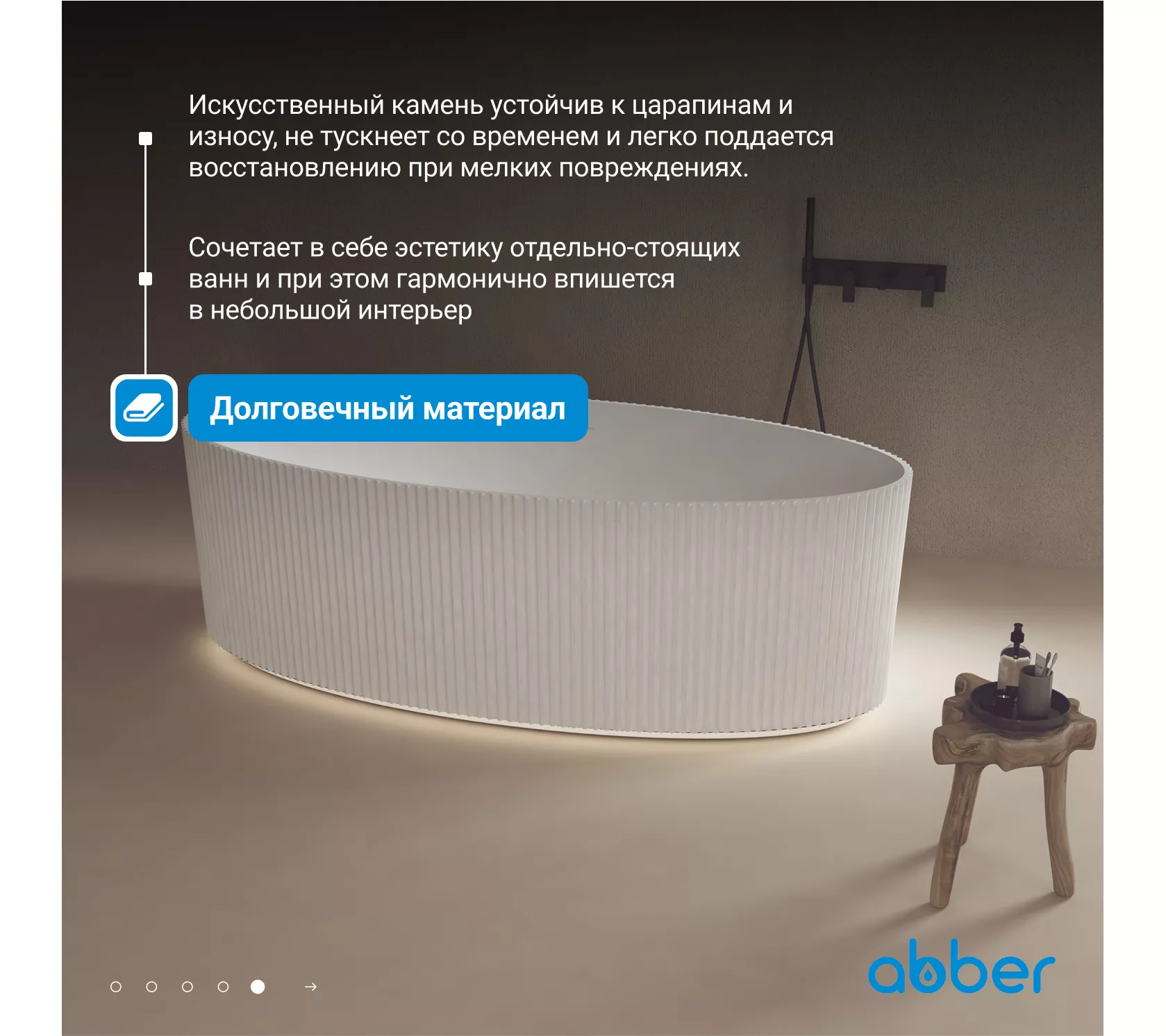 Ванна из искусственного камня ABBER Stein AS9627 белая матовая 180*85