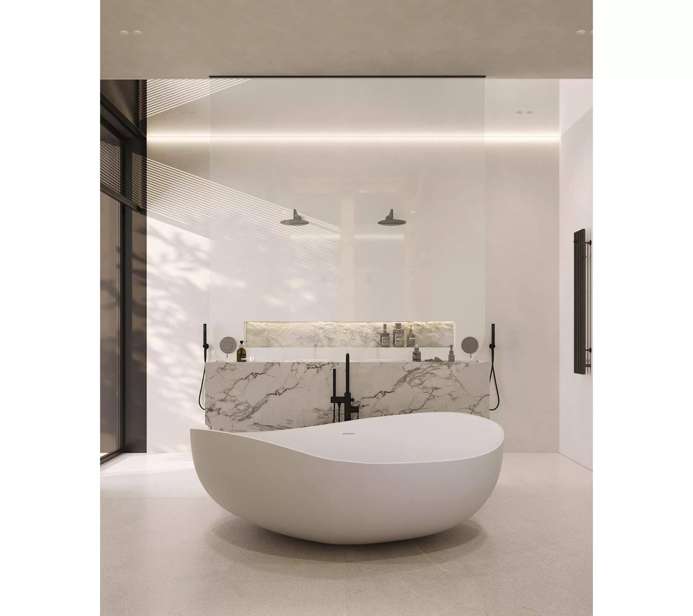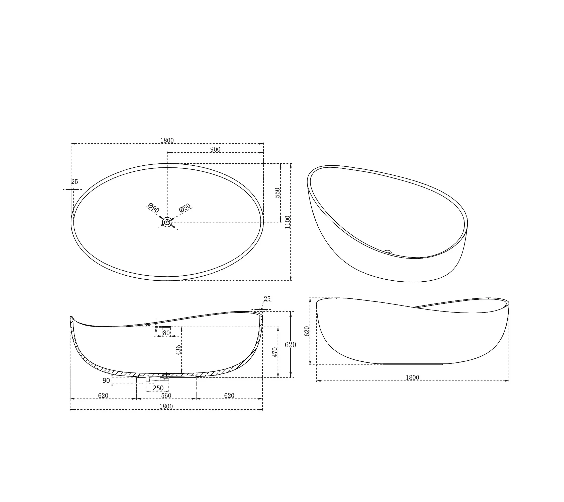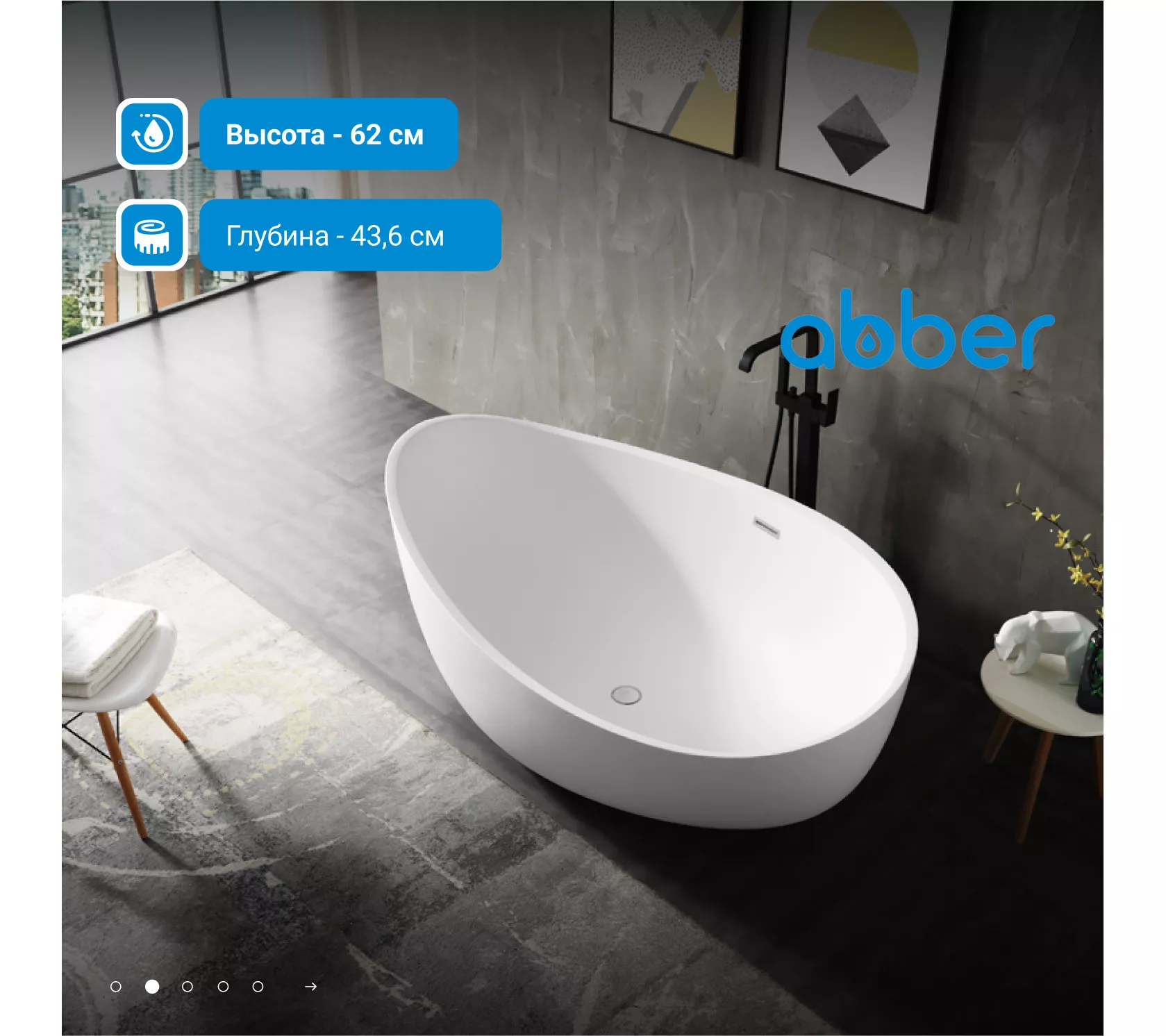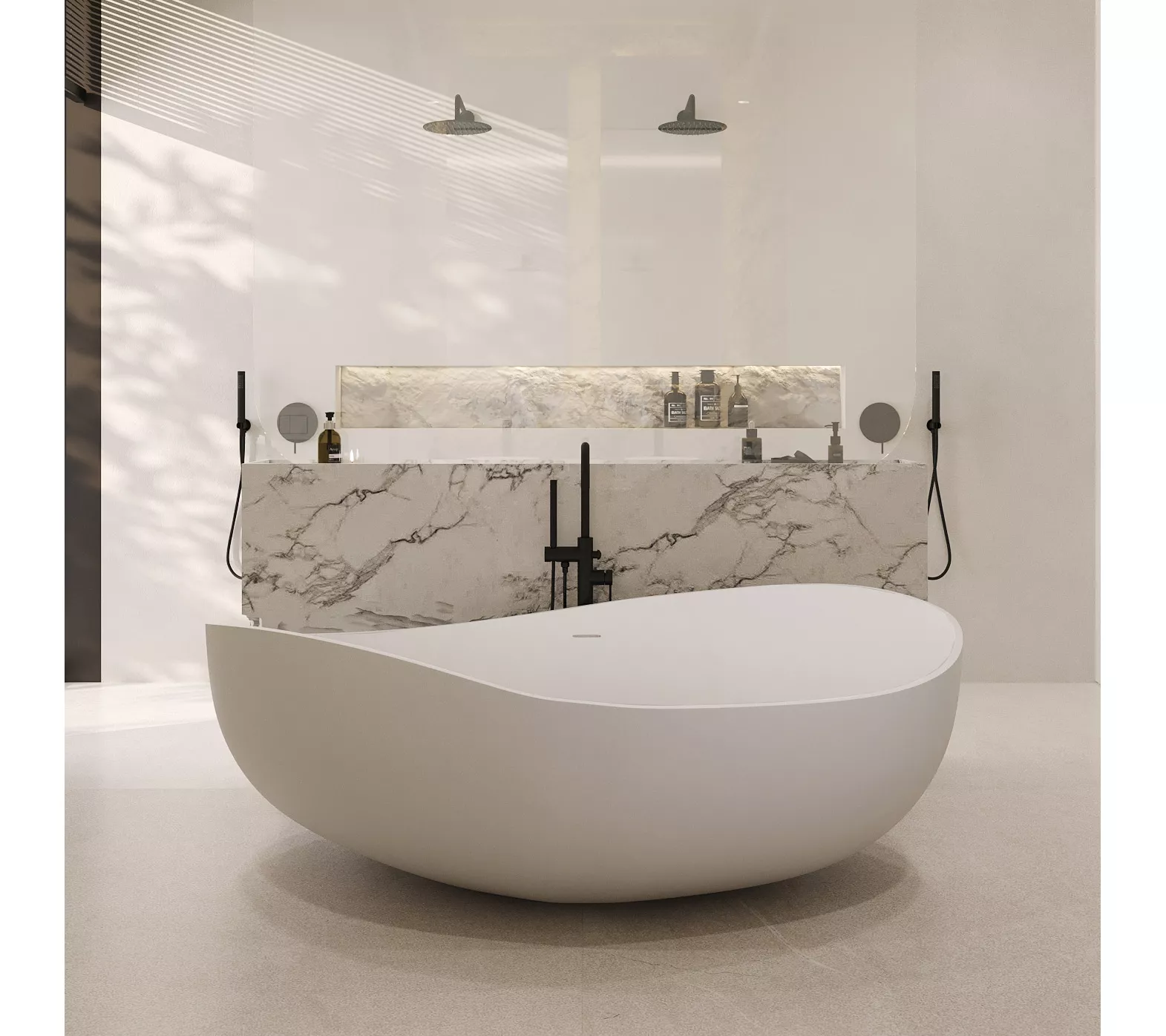 Ванна из искусственного камня ABBER Stein AS9639 белая матовая 180*110
