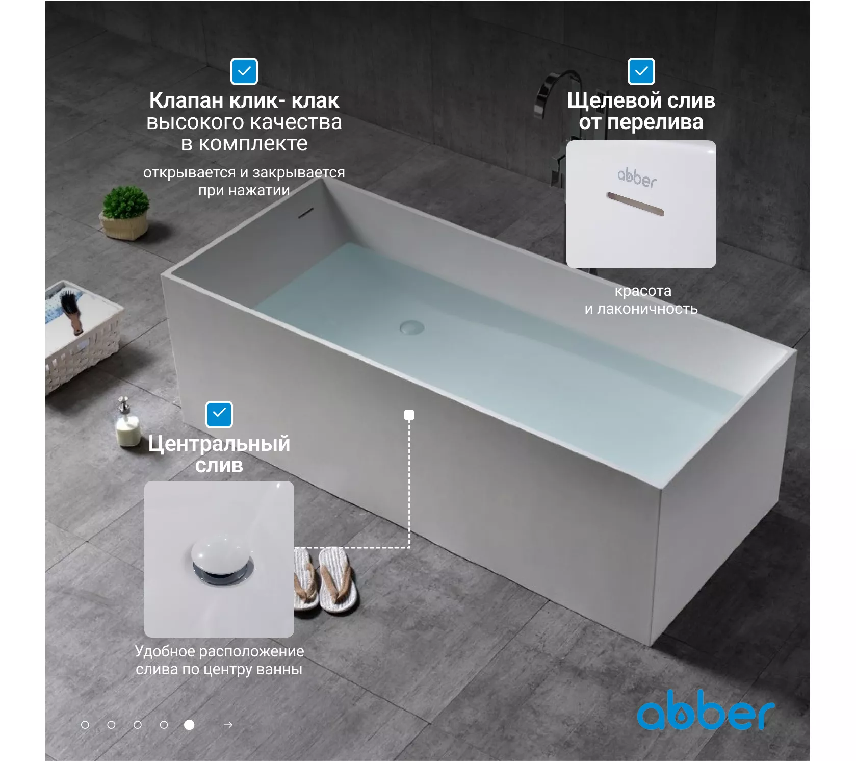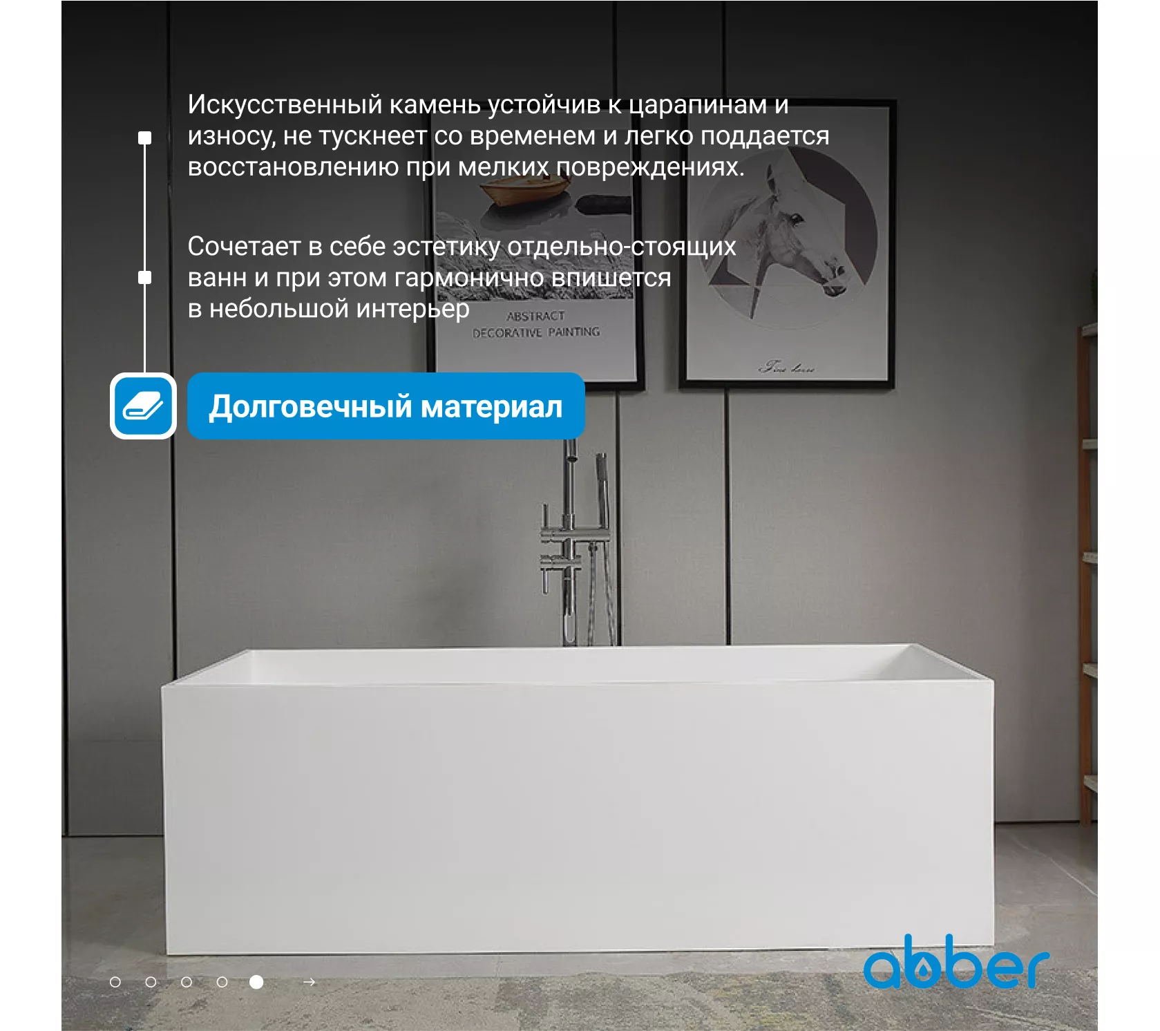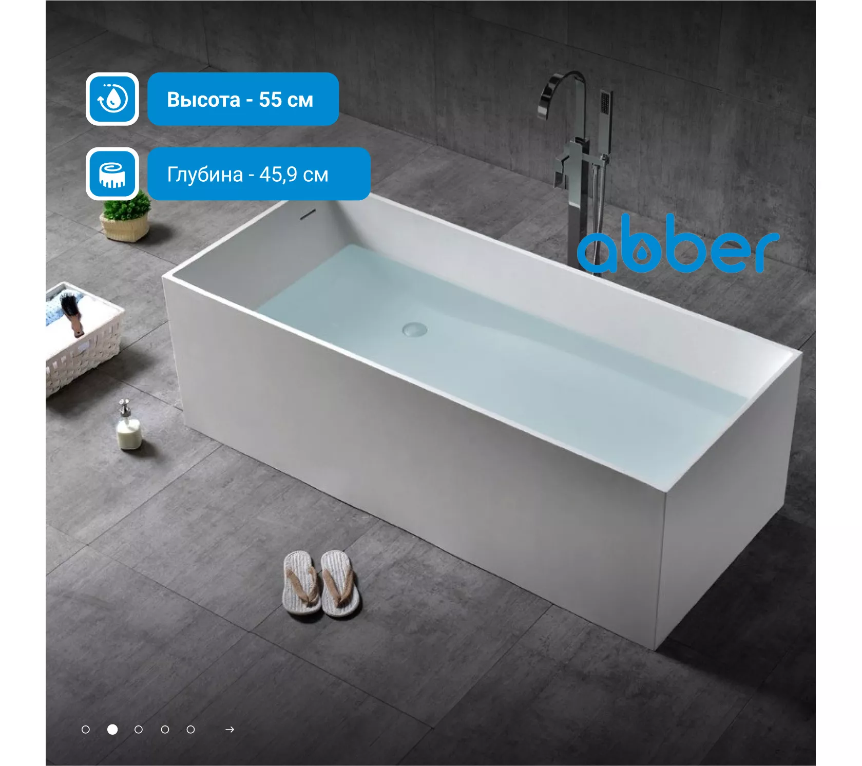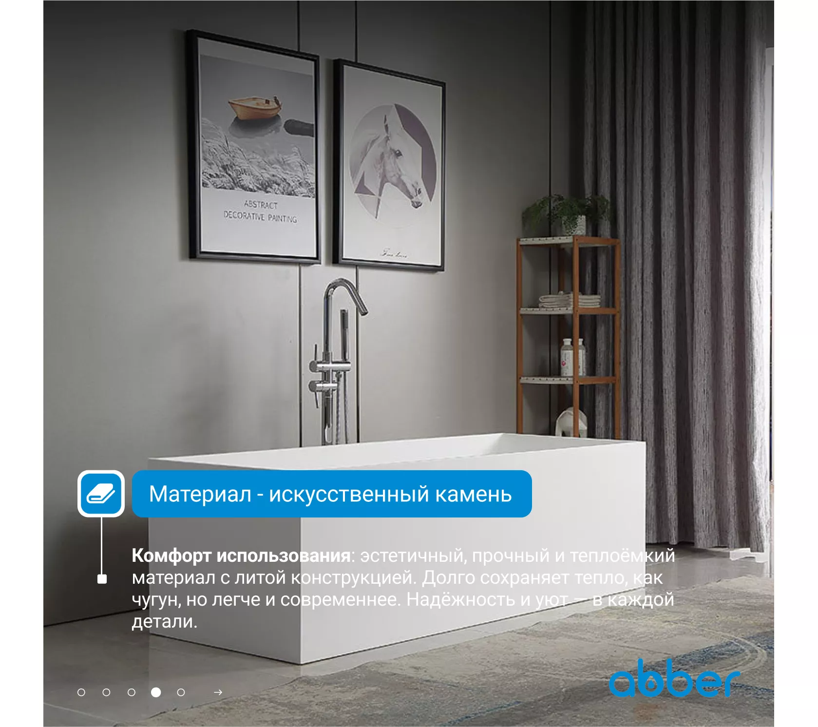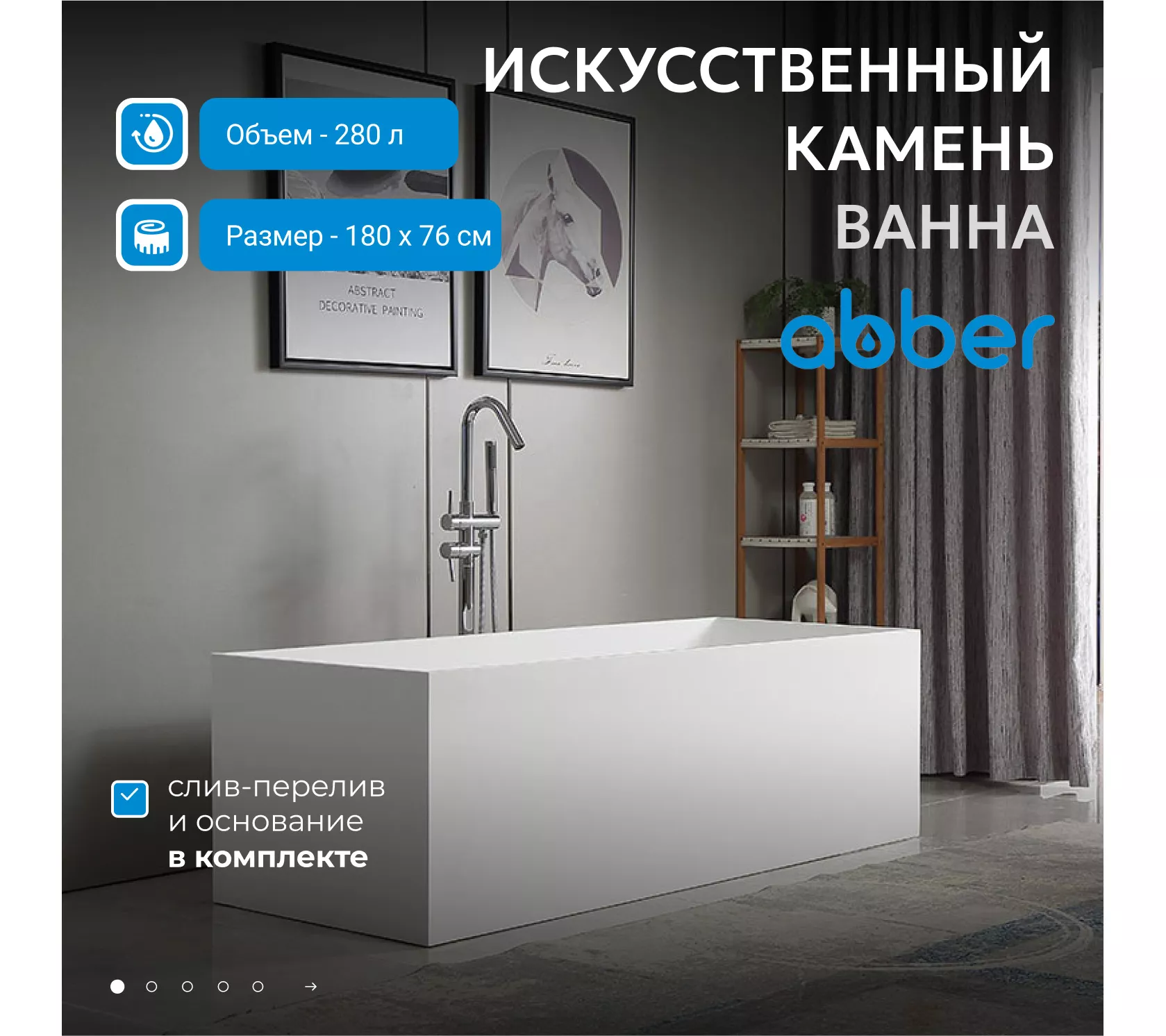 Ванна из искусственного камня ABBER Stein 180х76 белая матовая