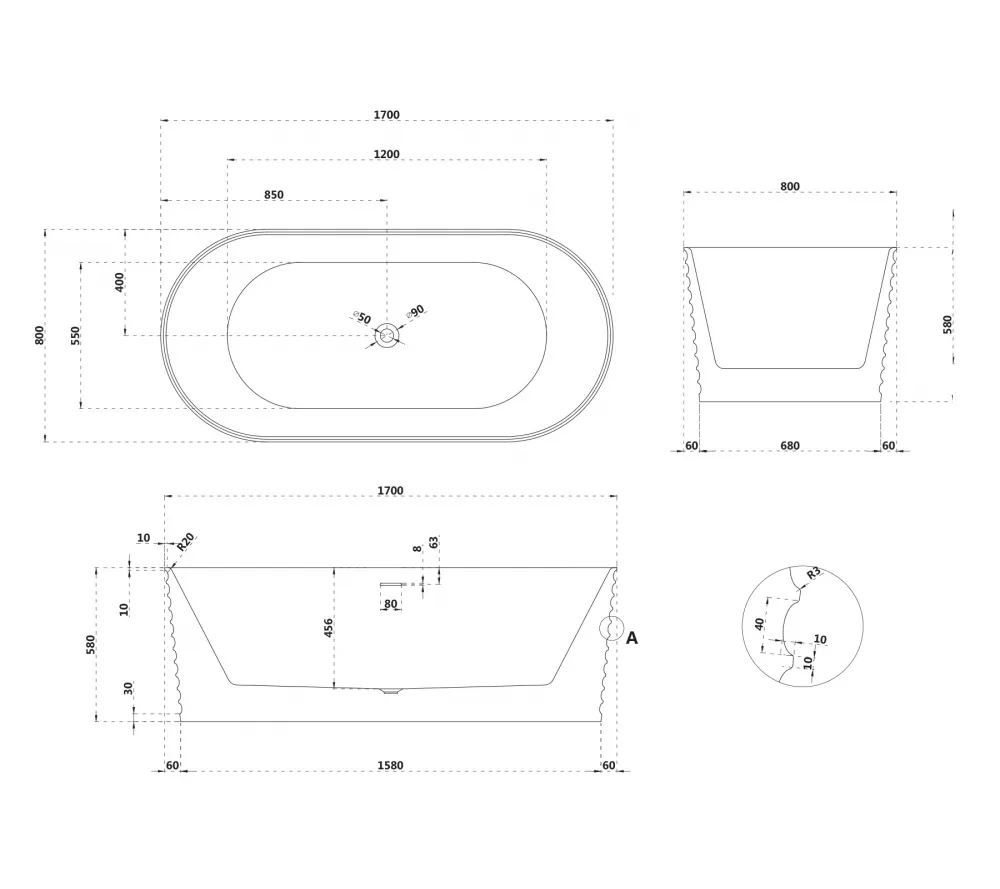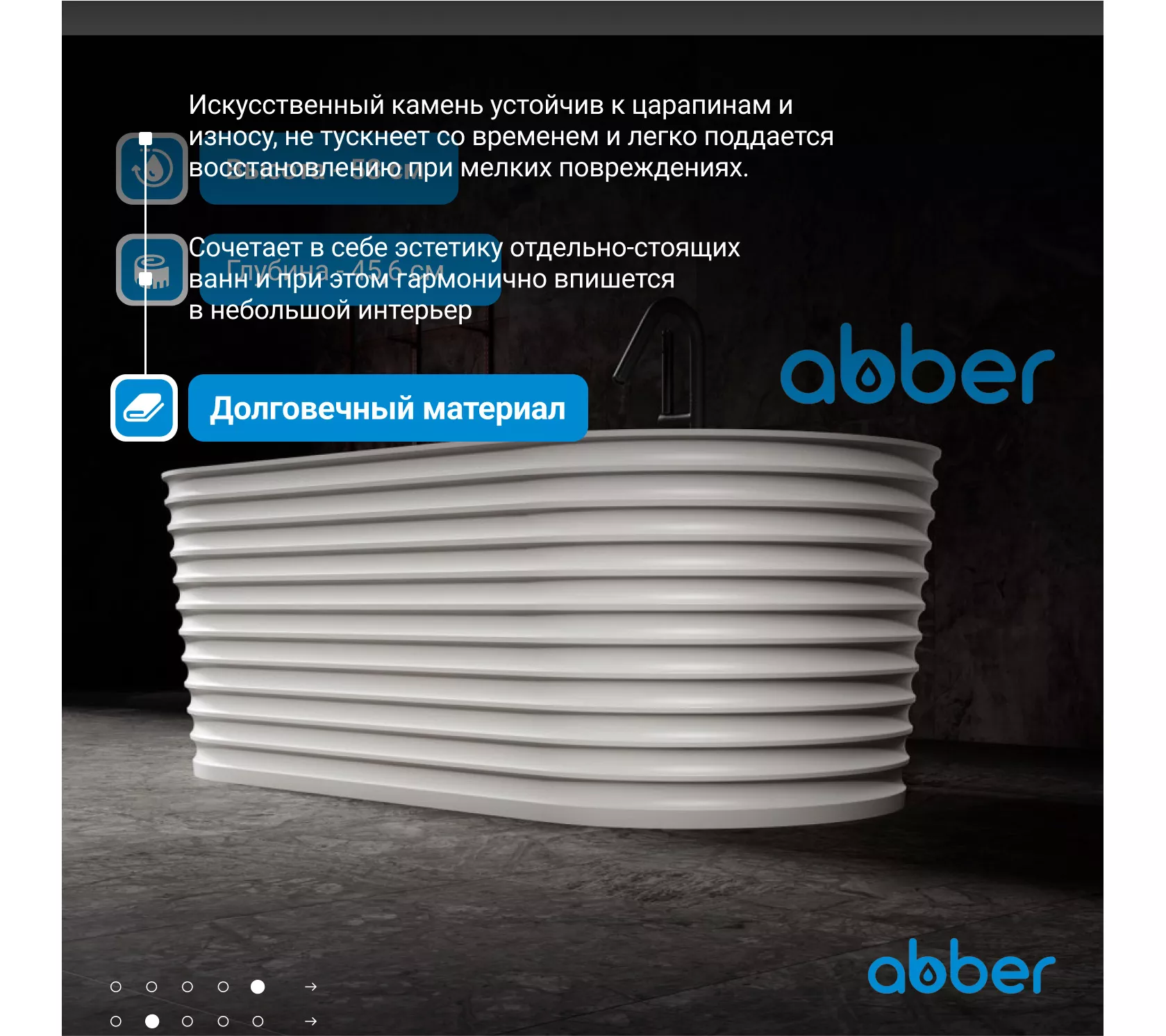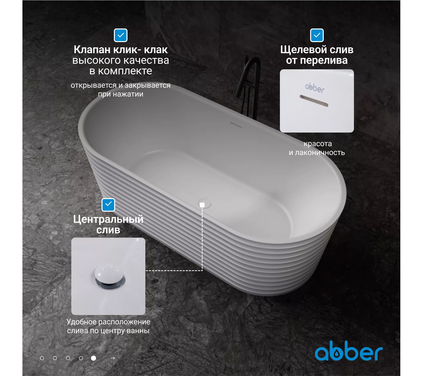 Ванна из искусственного камня ABBER Stein AS9650 белая матовая 170х80