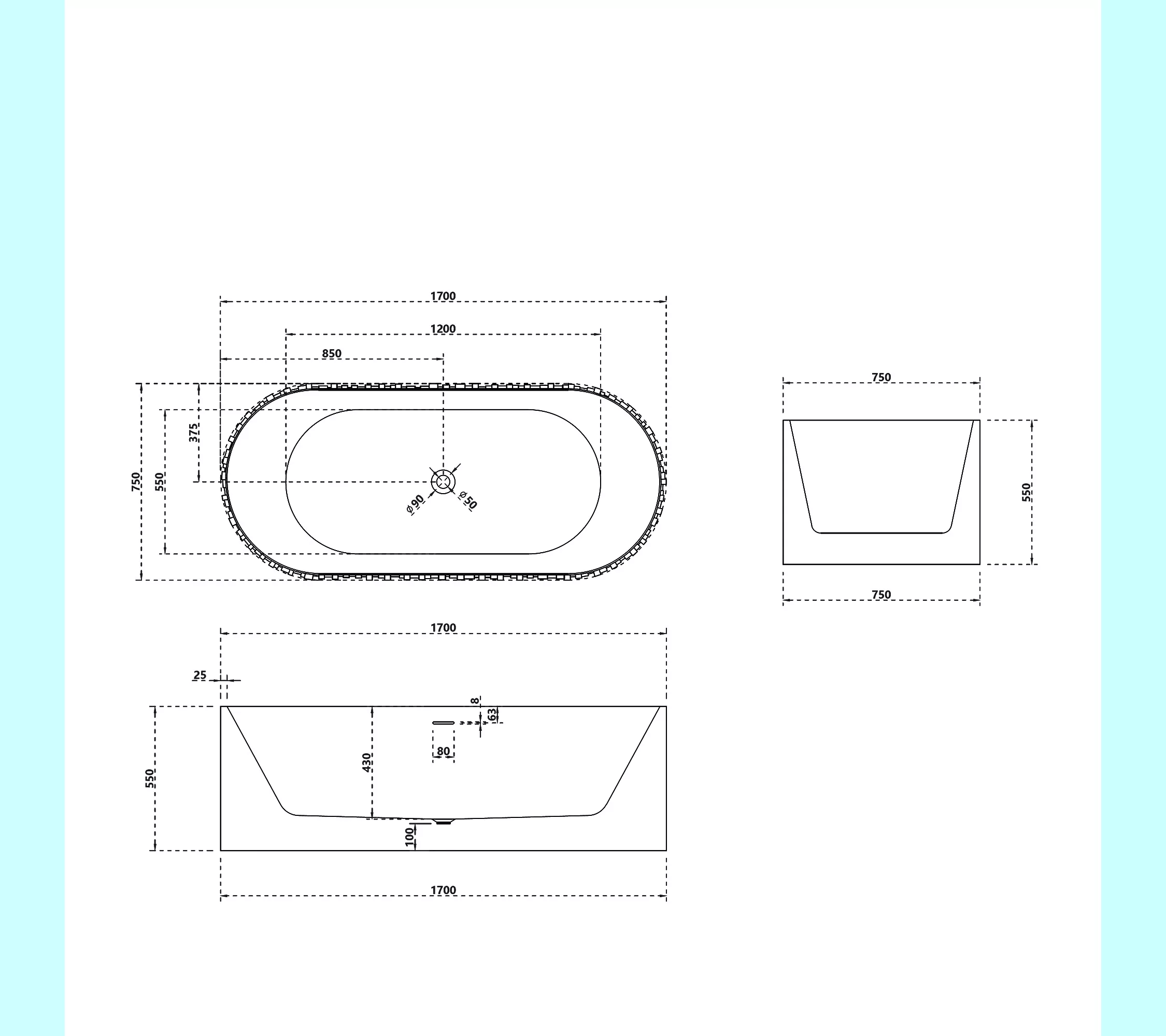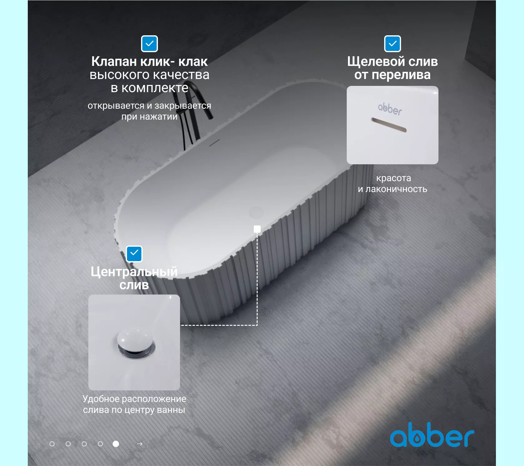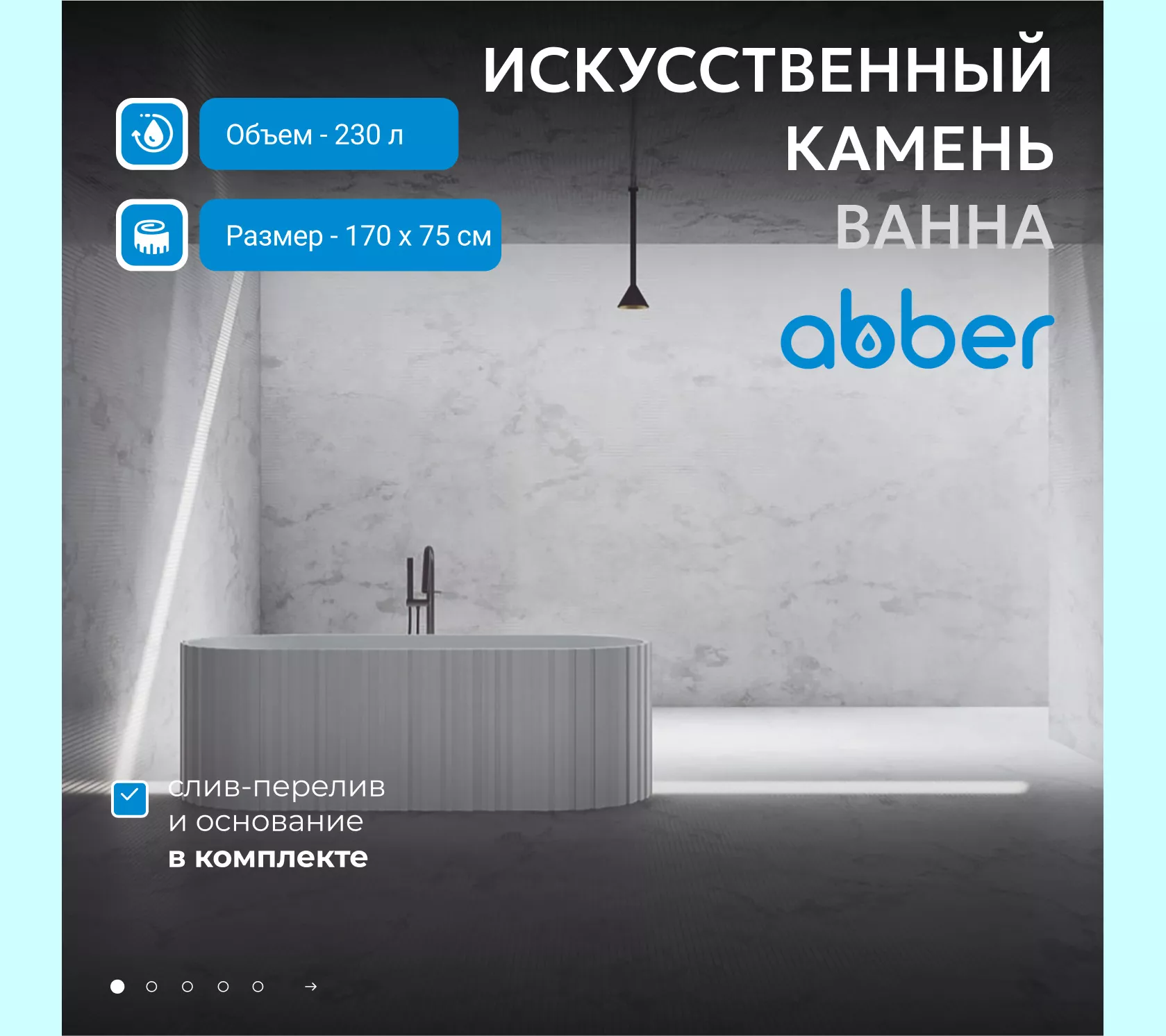 Ванна из искусственного камня ABBER Stein 170х75 белая матовая