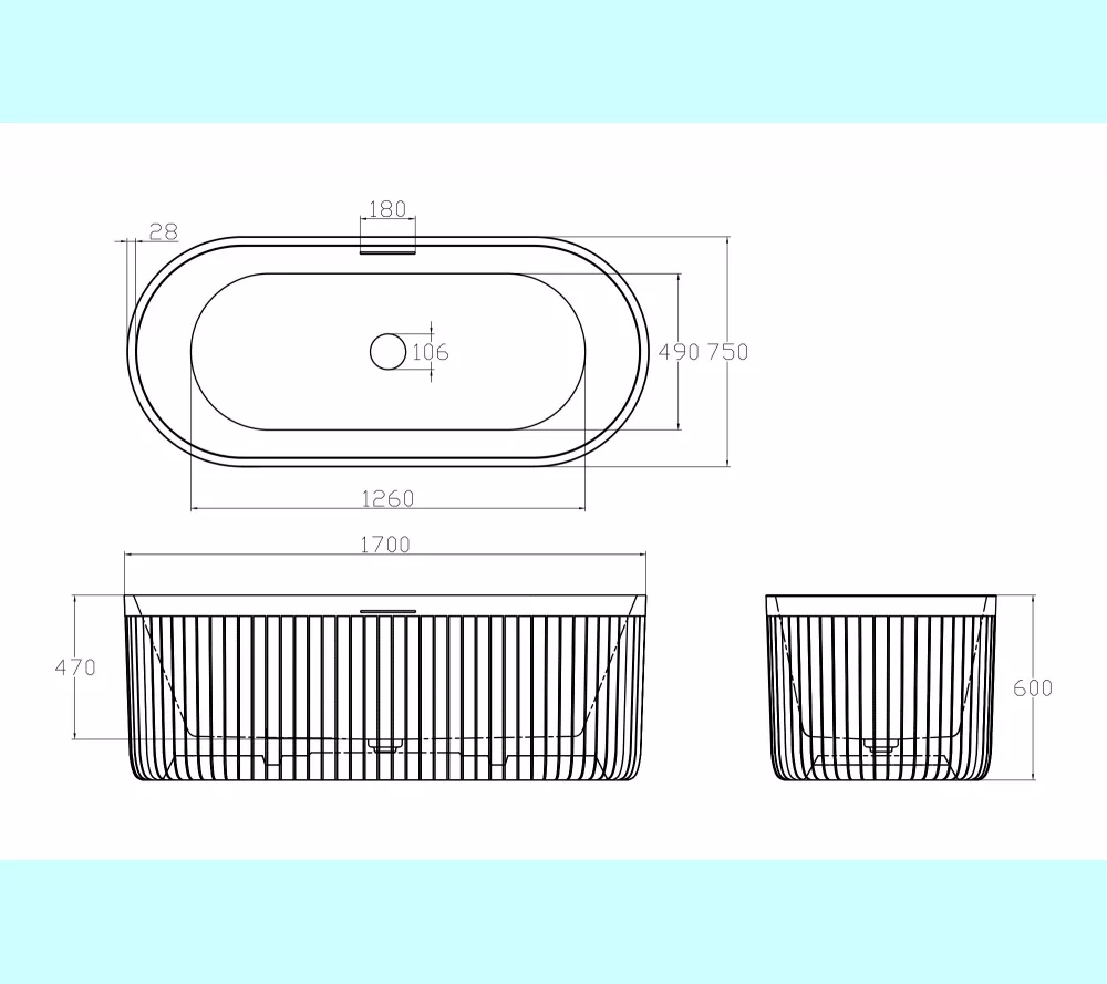 Ванна из искусственного камня ABBER Stuttgart 170х75 черная матовая