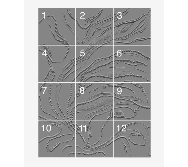 Панно размером 2400×1800 мм состоит из 12 гипсовых 3D-панелей. При желании композицию можно расширить в любом направлении, создав масштабную инсталляцию под индивидуальные дизайнерские задачи. PEARLS станет идеальным решением для тех, кто ценит гармонию природных мотивов и эксклюзивный характер пространства.