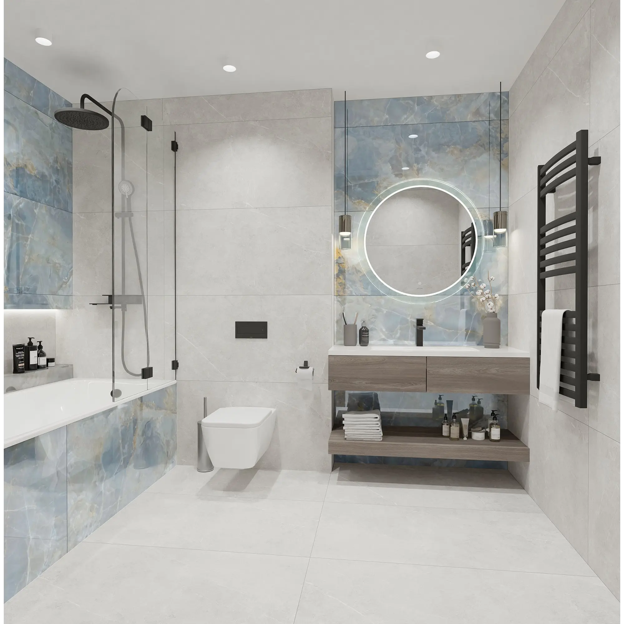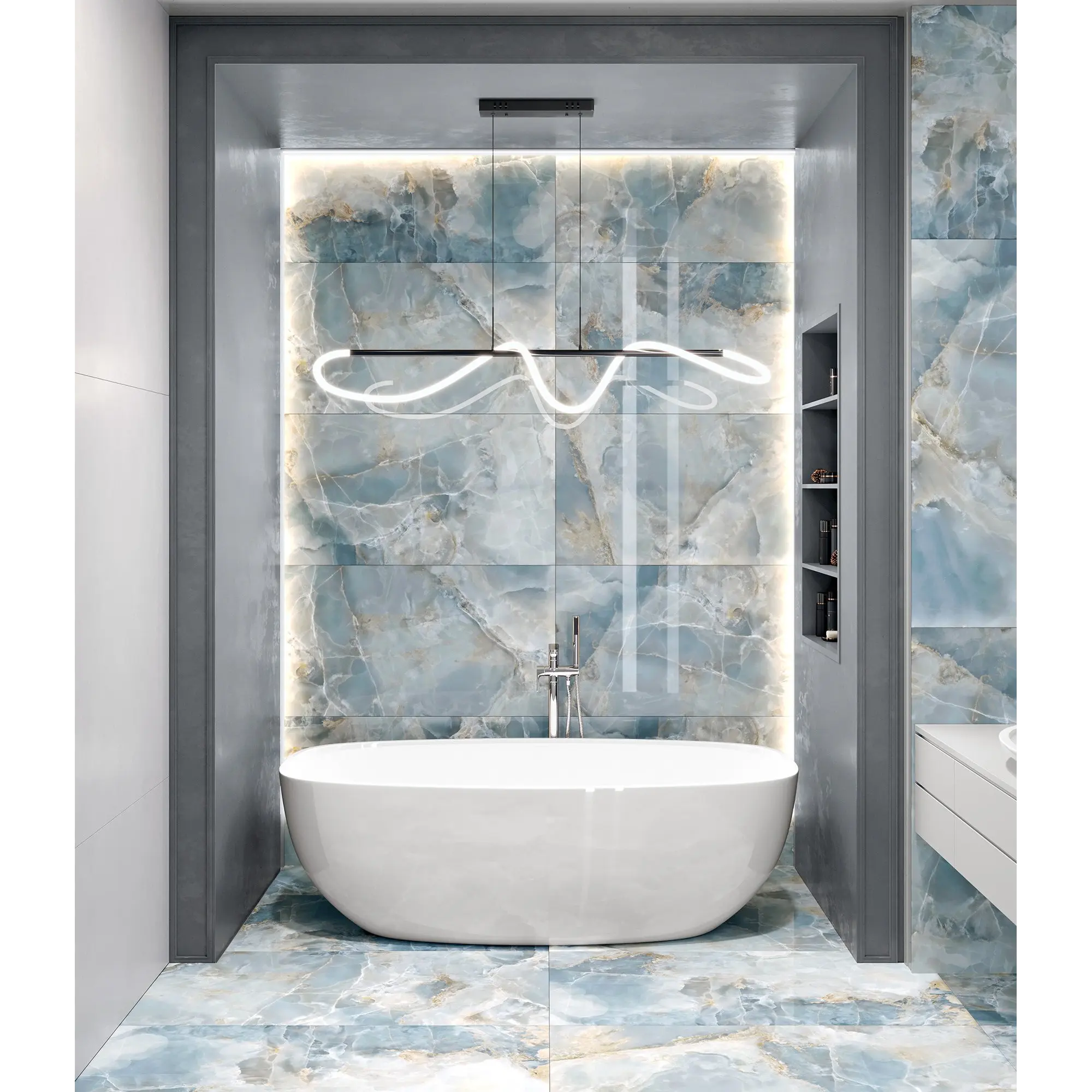 Завораживающая текстура оникса является неотъемлемой частью люксовых интерьеров. Большое количество оттенков дает дизайнерам массу возможностей для творчества. Коллекция Favorito c имитацией натурального оникса обязательно запомнится вам своей неповторимой текстурой. Холодные серо-голубые оттенки керамогранита дополняют трещины и живописные песочно-золотистые прожилки. Крупный формат, полированная поверхность и 12-ть неповторяющихся окон помогут создать элегантный и роскошный интерьер.