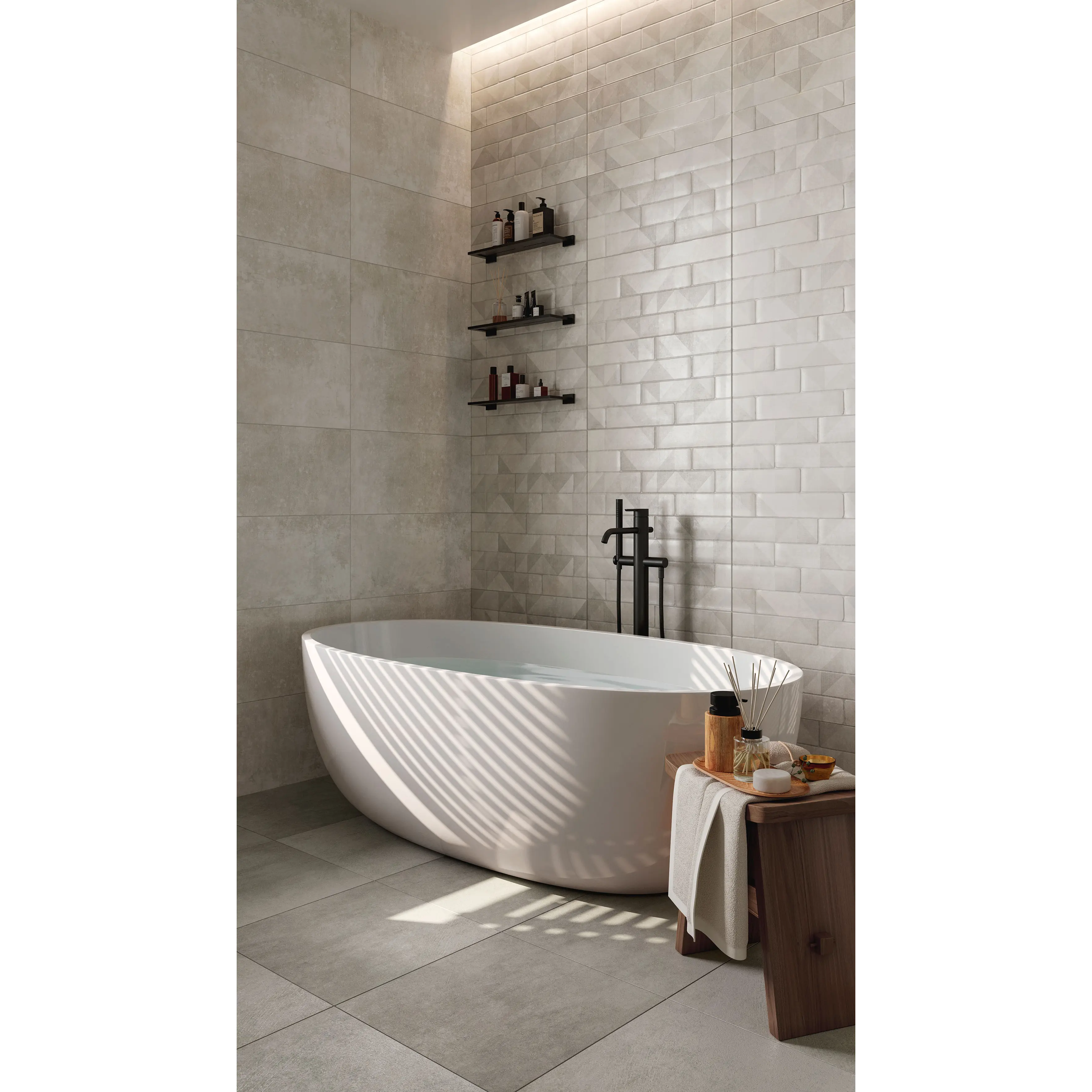 Коллекция Quarto имитирует текстуру архитектурного бетона, которая сегодня широко применяется в дизайне интерьеров и по праву может считаться трендом последних лет. Светло-серые и графитовые оттенки базовых плит станут прекрасным фоном, а акцентный декор с фактурой кирпича даст неограниченные возможности декорирования как целых стен, так и определенных зон. Коллекция Quarto незаменима при создании интерьеров в стиле лофт, минимализм, индастриал.