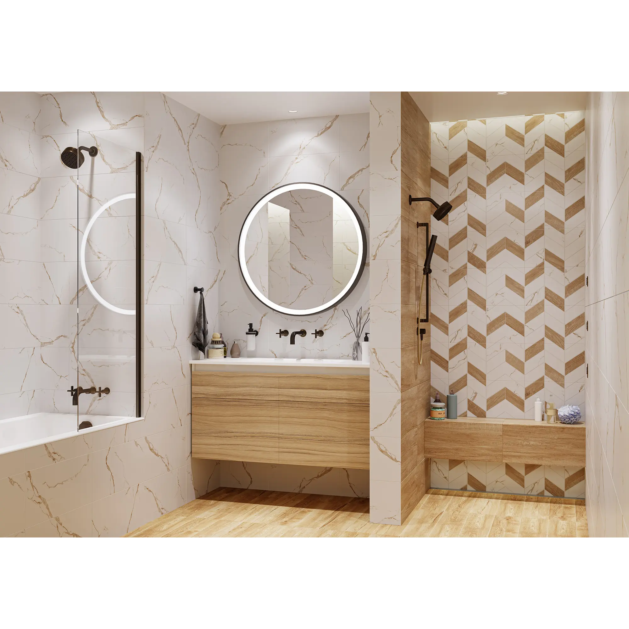 Коллекция Sombra представляет собой оригинальное сочетание ботанического рисунка и монохромного архитектурного бетона. Базовые плиты выполнены в двух расцветках – светло-серой и маренго. Поверхность, имитирующая бетон, имеет неоднородный цвет: хорошо заметна градация оттенков с неровными границами, что позволяет сохранить при укладке эффект натурального покрытия. Декоративные вставки получили принт в виде широких и узких пальмовых листьев неброского зеленого цвета с переходами светлых и темных оттенков. Приятная зелень листьев оттеняется светло-серым фоном и позволяет создать в комнате атмосферу тропического сада с ноткой расслабленности. Плитка Sombra дарит настоящий отдых глазам и поэтому подходит для облицовки ванных, кухонь и спален, выполненные в таких стилях, как эко, минимализм, сканди, лофт.