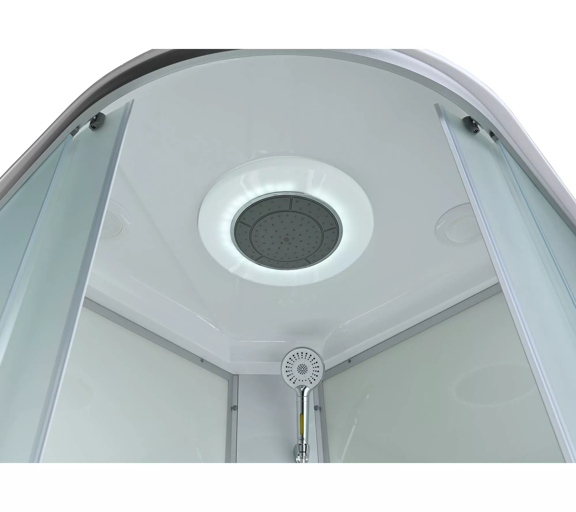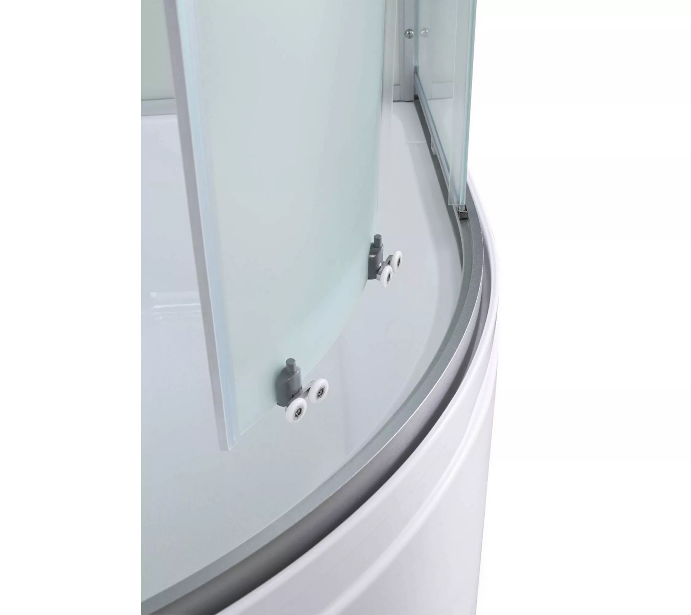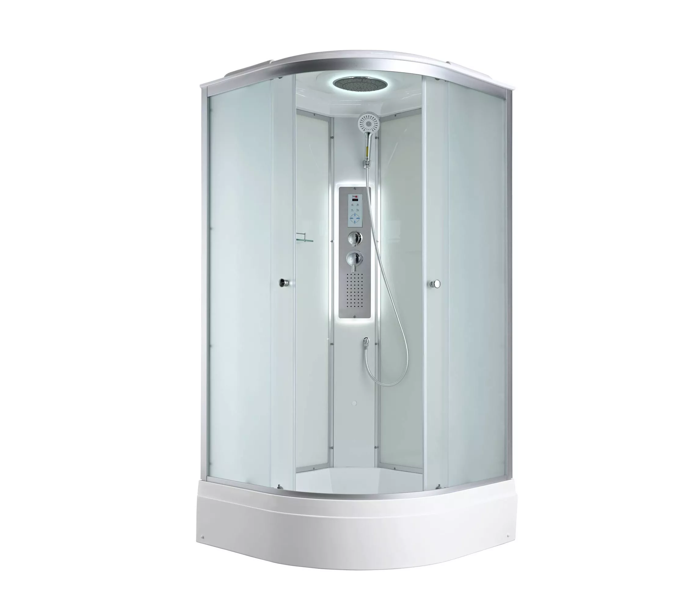 Сборка без силикона (увеличивает срок службы), внутренняя сборка (облегчает установку и ревизию, позволяет установить душевую кабину в ограниченном пространстве),смеситель резьбовой (без хомутов), съемный экран поддона (позволяет осуществлять ревизию сифона), цвет профиля матовый хром.