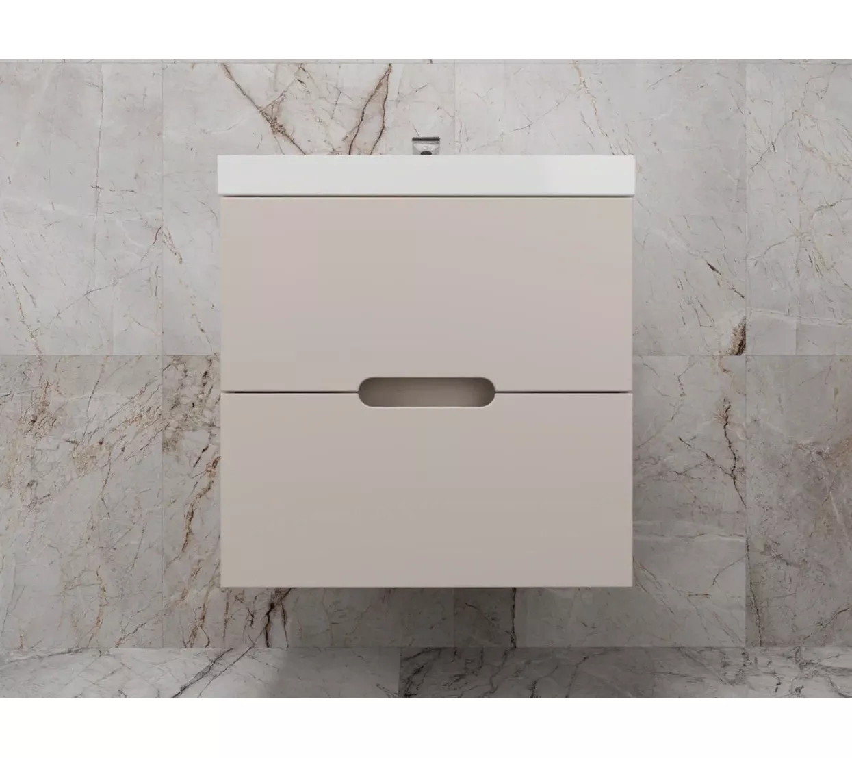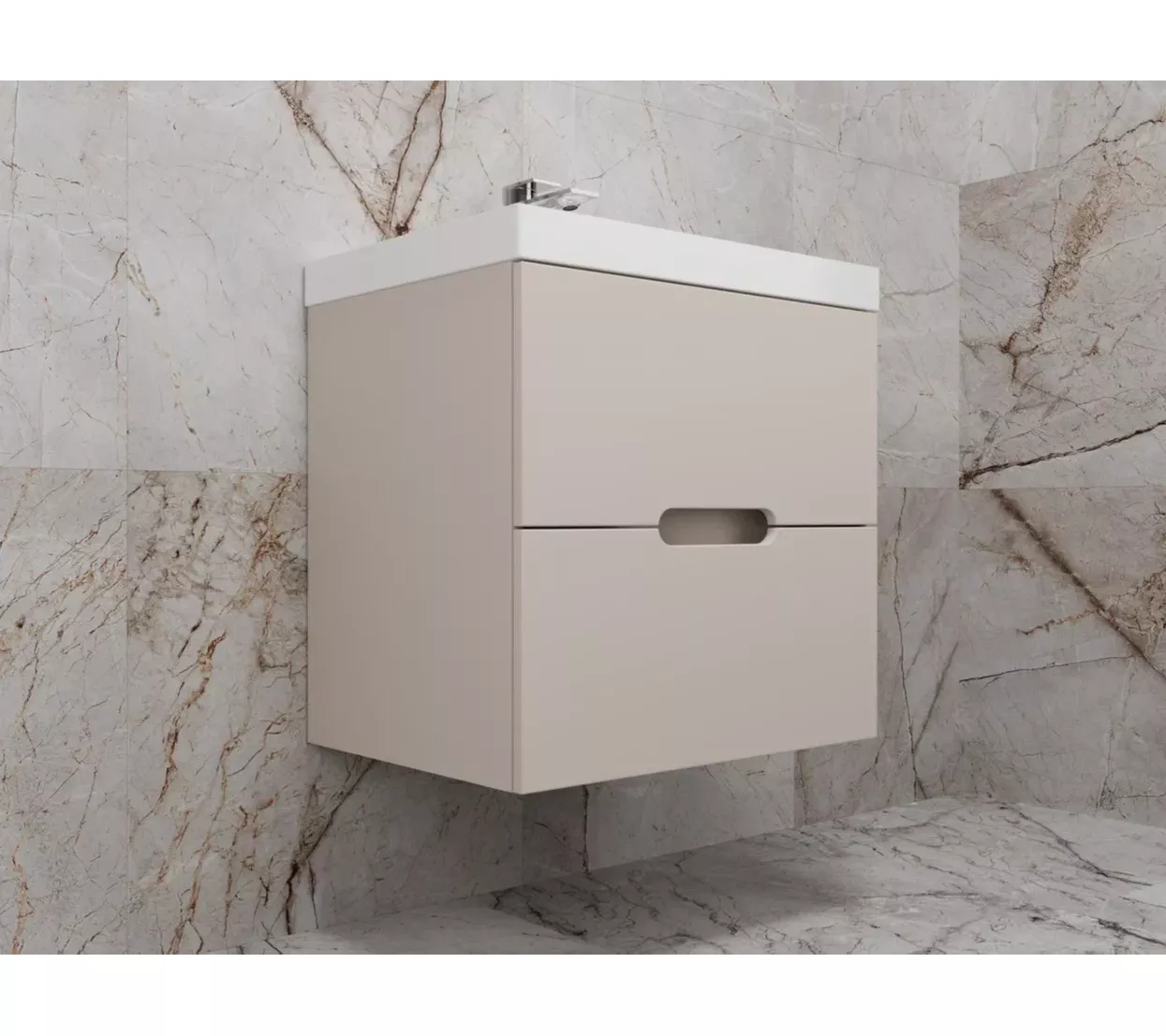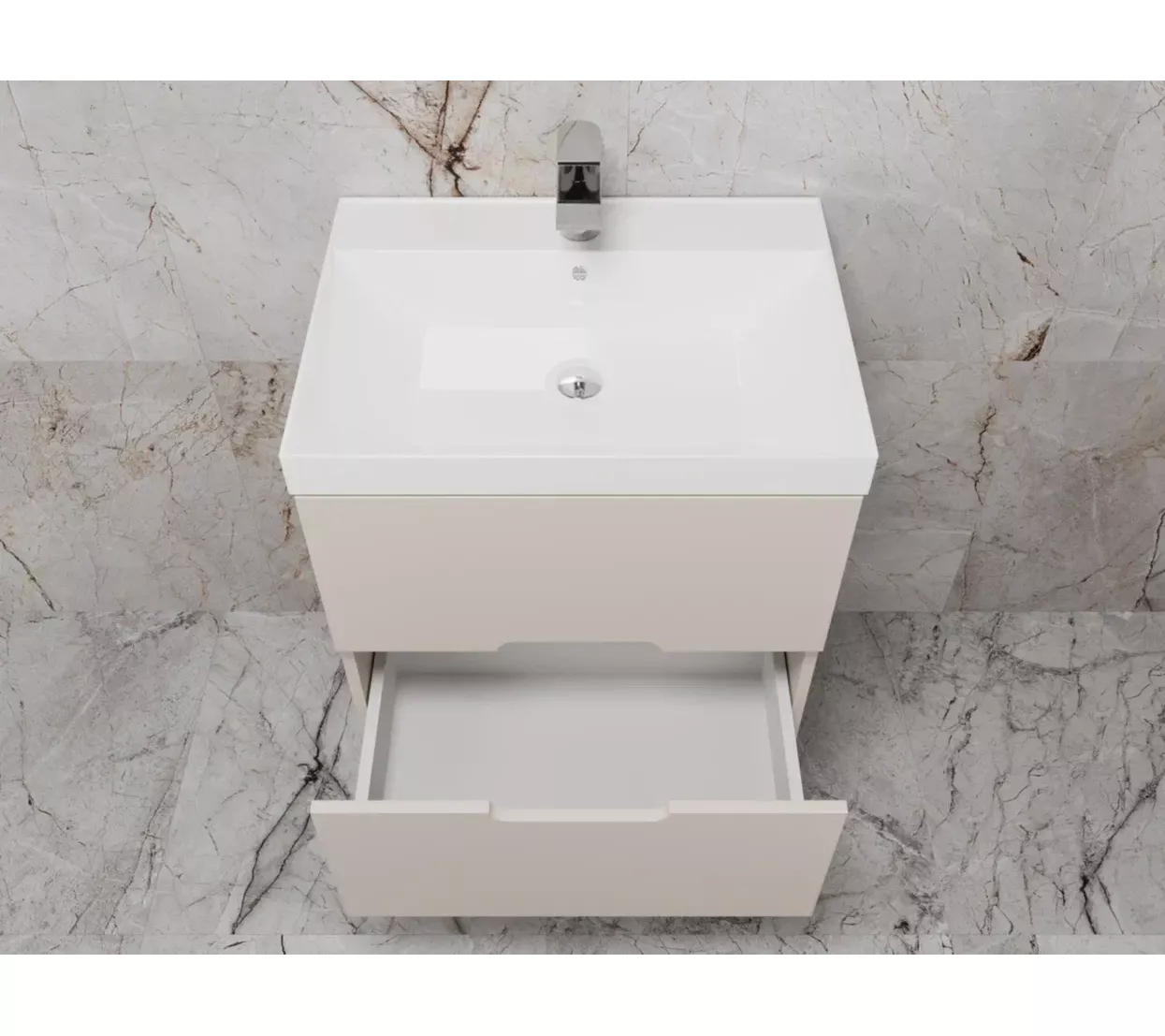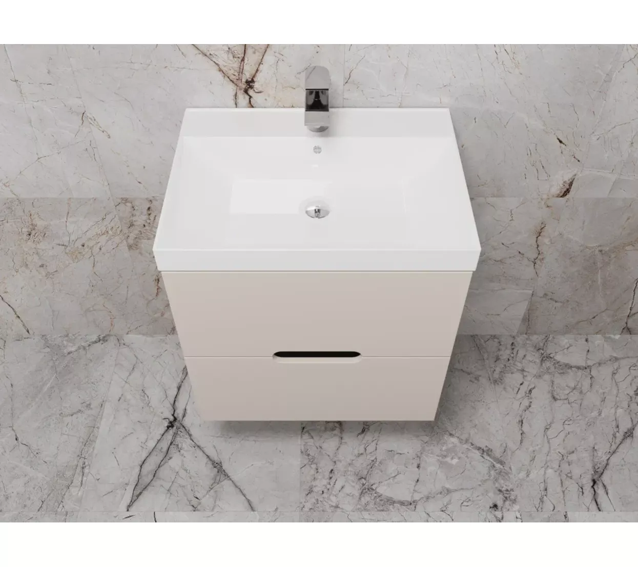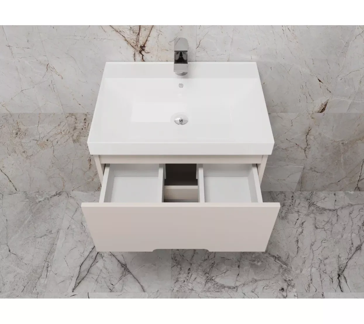 Тумба подвесная "Матис", с раковиной Classic (2 ящика), КРЕМ, ЭМАЛЬ
